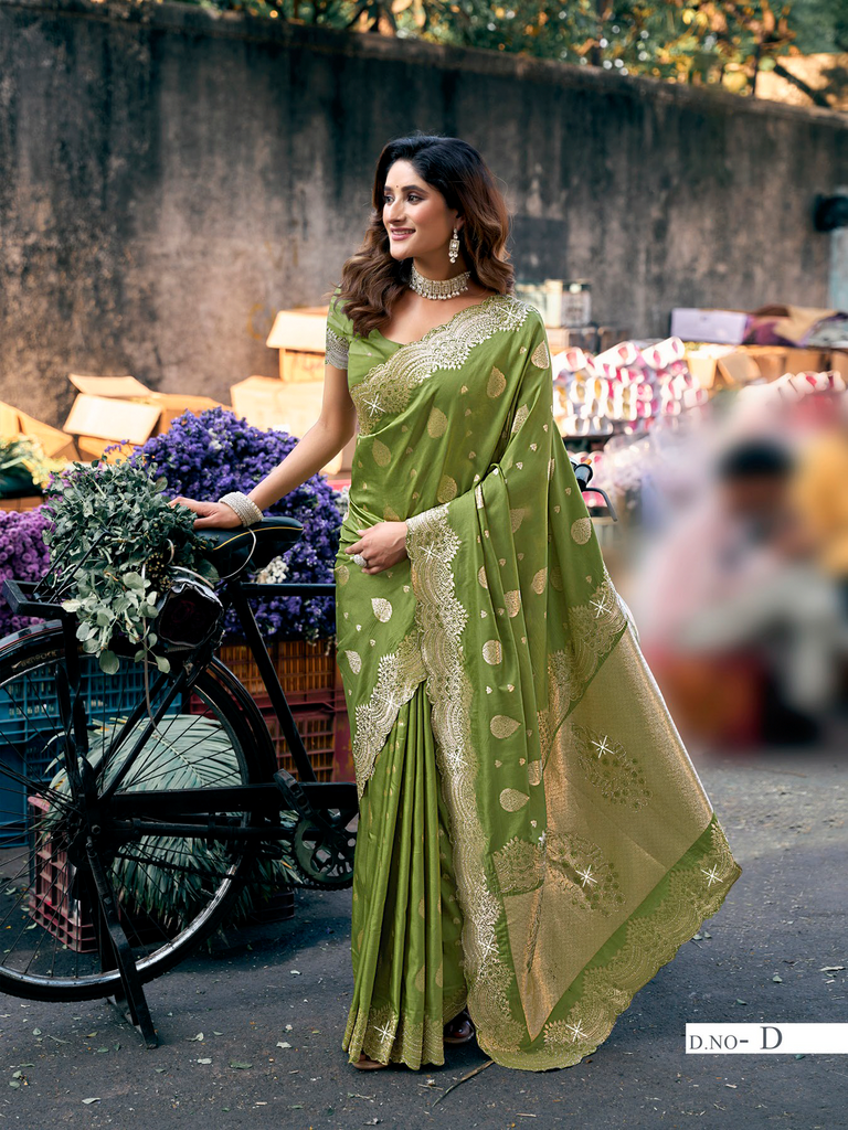 Meticulously crafted designer sarees featuring exquisite diamond work on premium art silk fabric. These vibrant, richly-colored pieces elevate special occasions with their exceptional craftsmanship and luxurious appeal. The perfect statement garment for creating memorable moments at weddings, celebrations, and formal gatherings.
