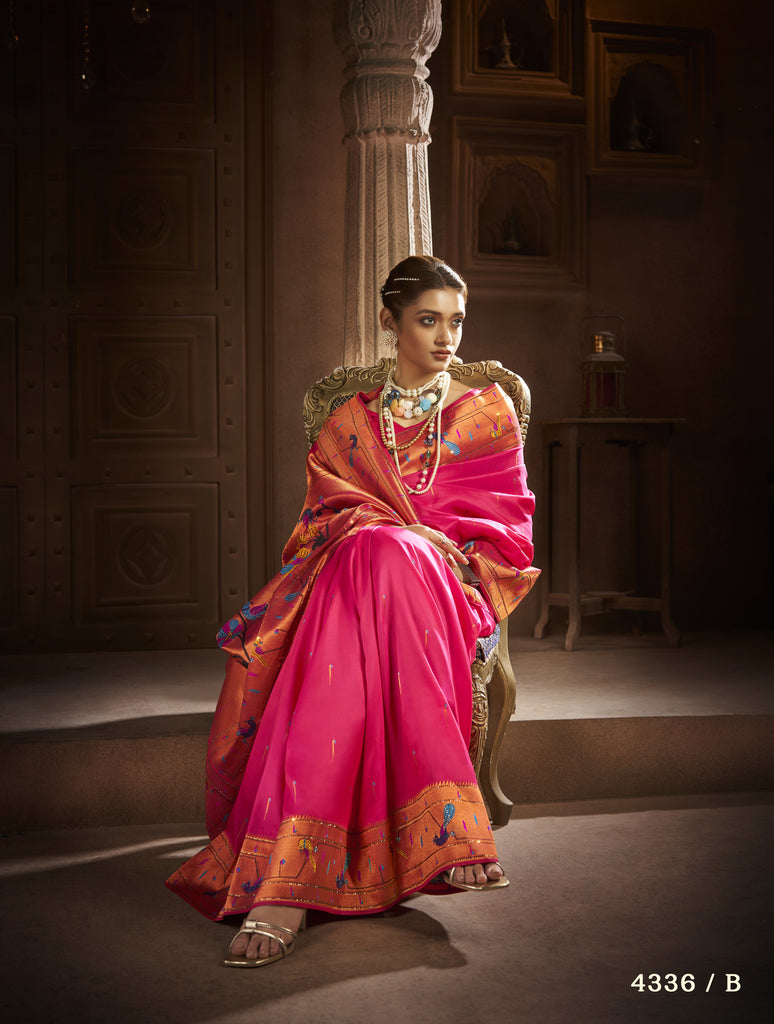 Diamond Glam Paithani Sarees are a luxurious blend of elegance and opulence. These sarees are handwoven with pure silk and adorned with intricate zari work, featuring dazzling diamond patterns