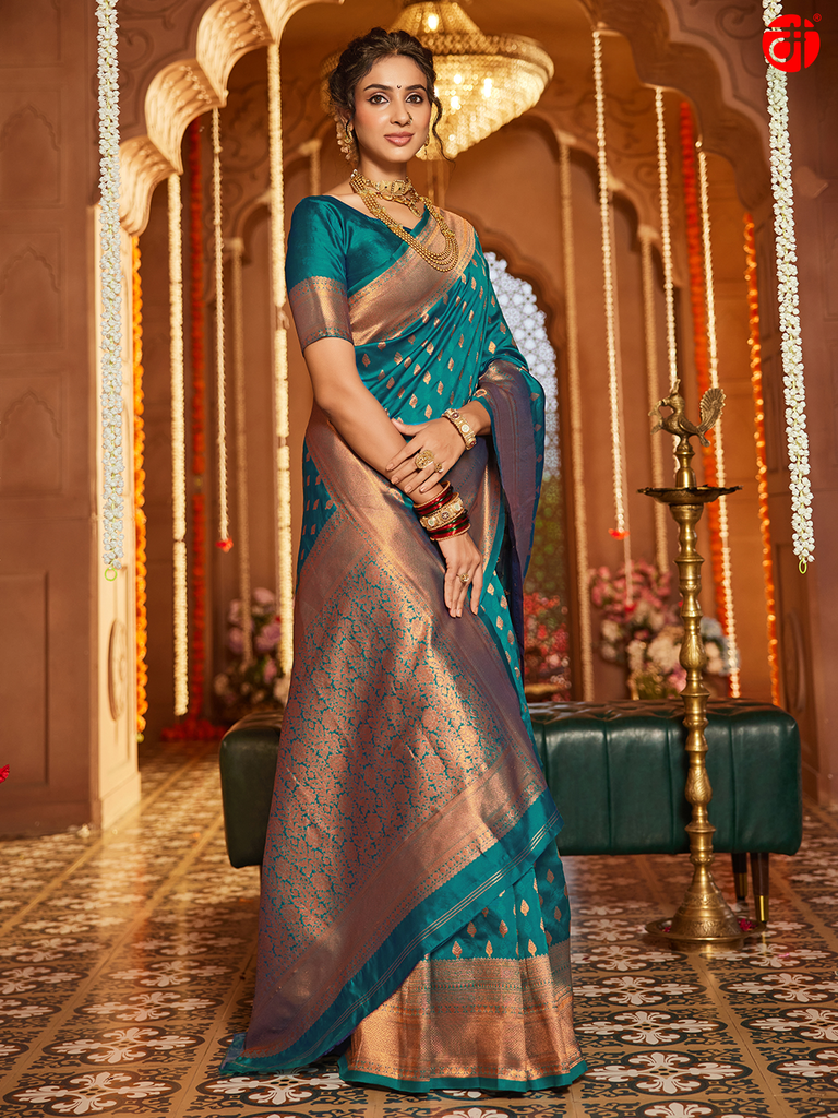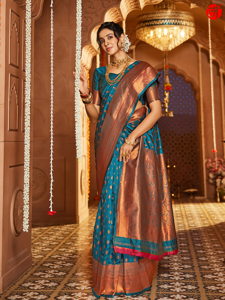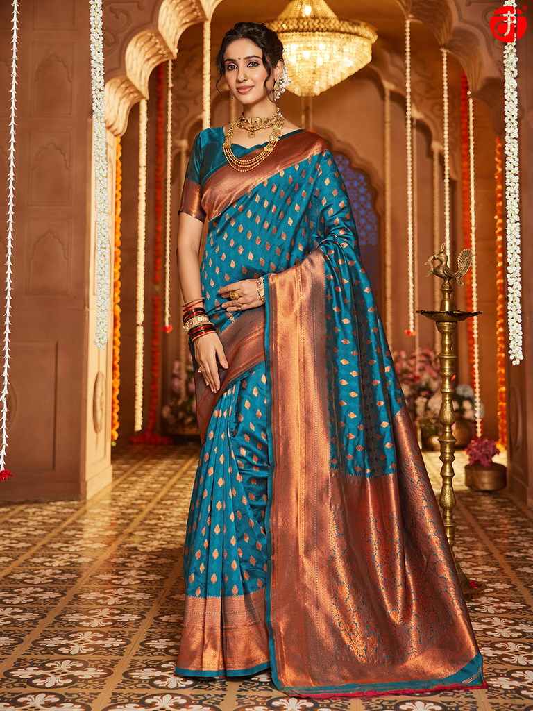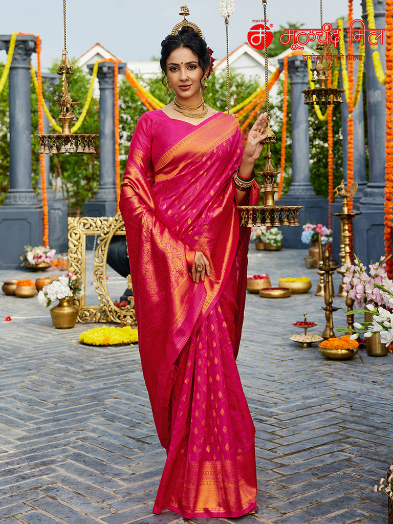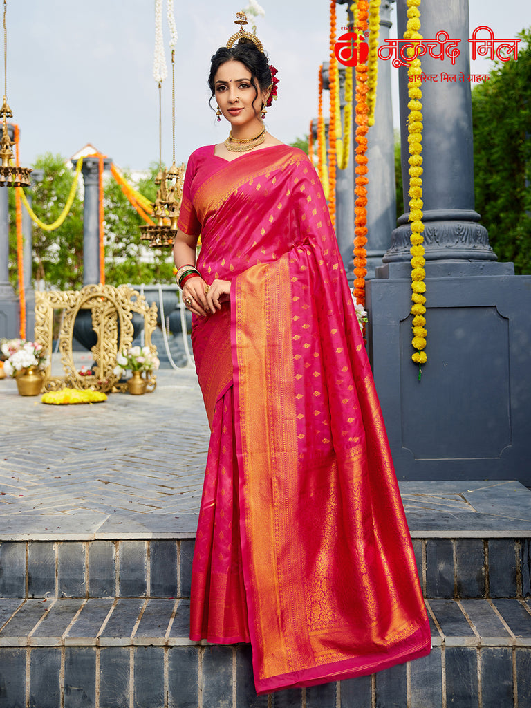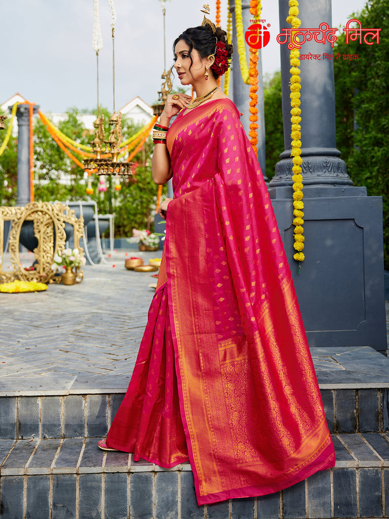 Elevate your Rakhi celebrations with this grand Silk Saree, designed to make a bold statement. Crafted from luxurious silk, it drapes effortlessly, combining tradition with a fearless edge. Perfect for those who want to stand out while honoring timeless customs.