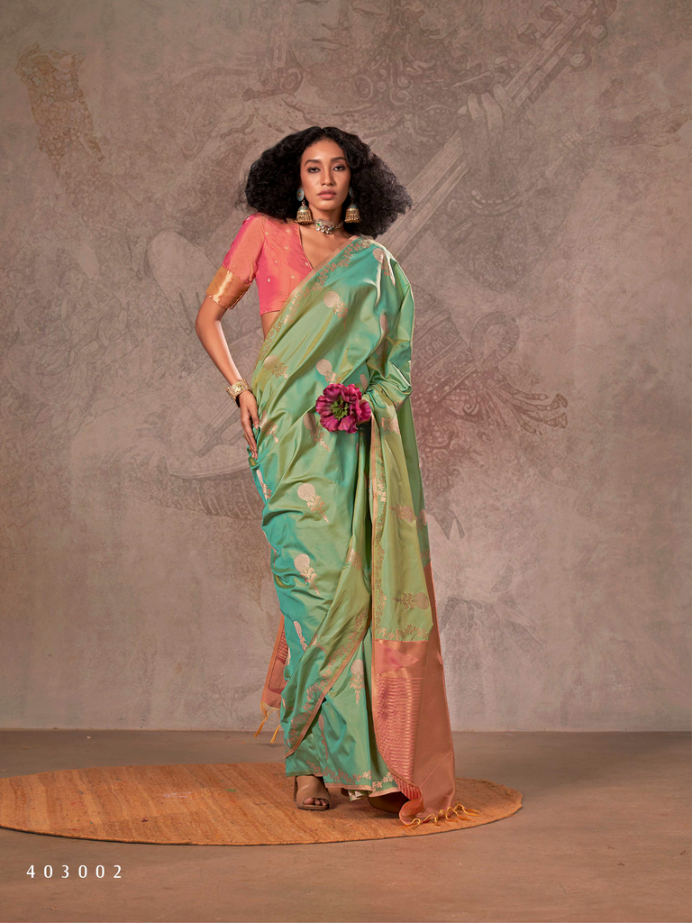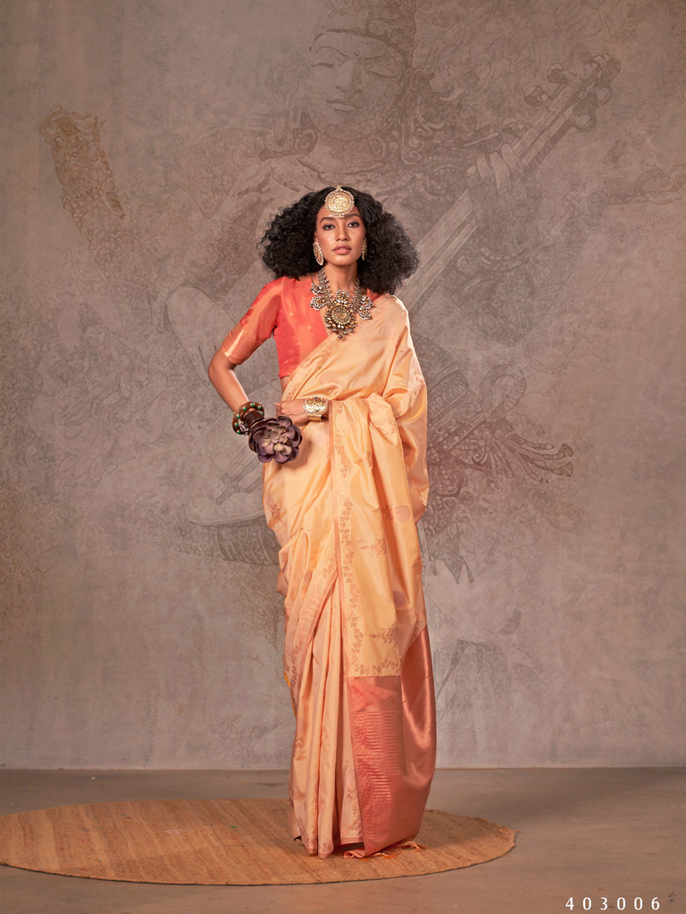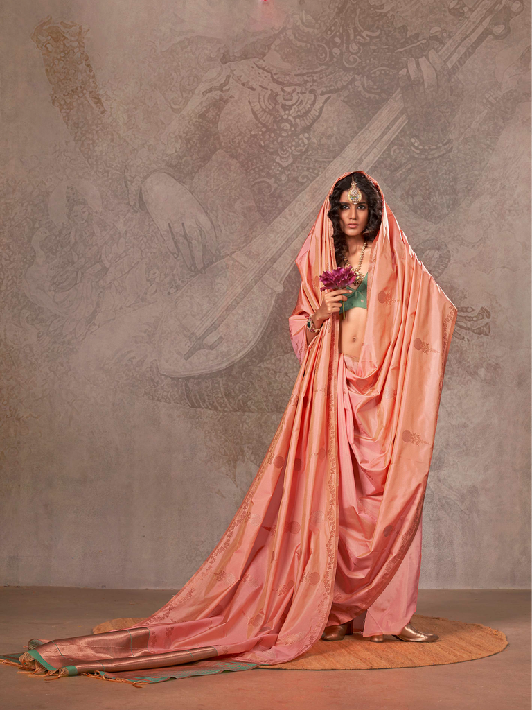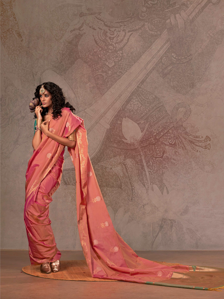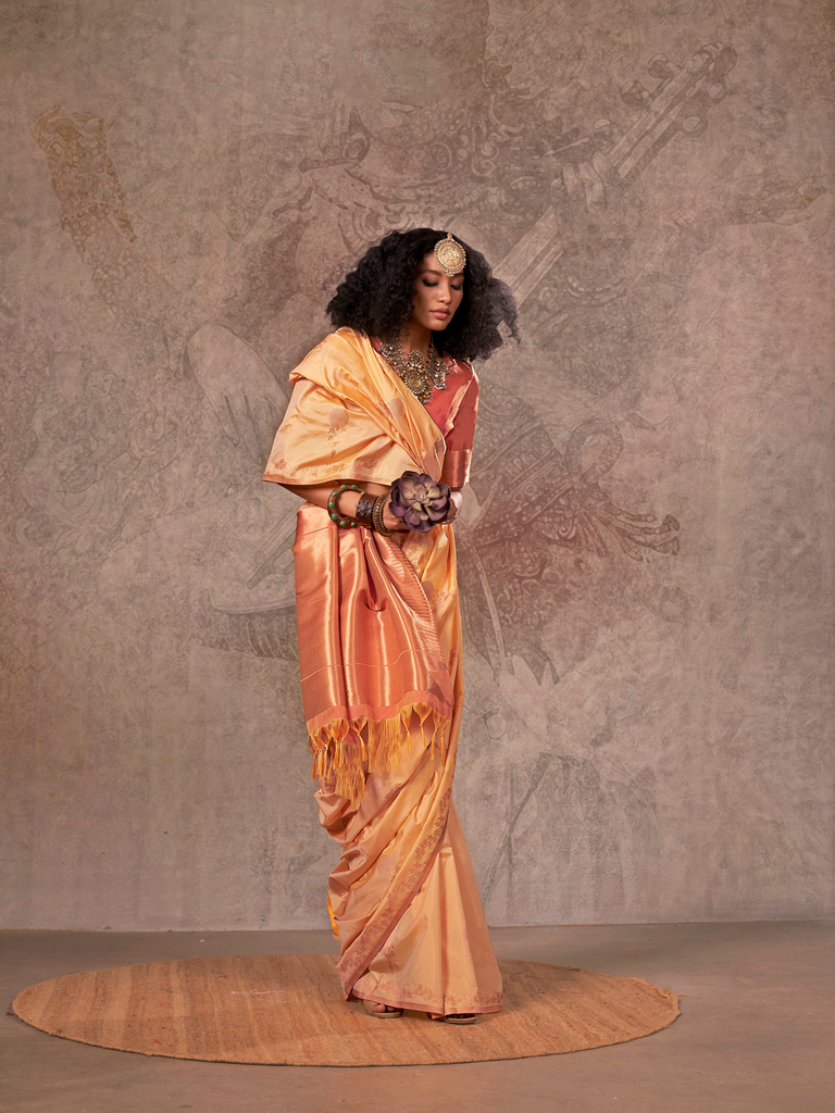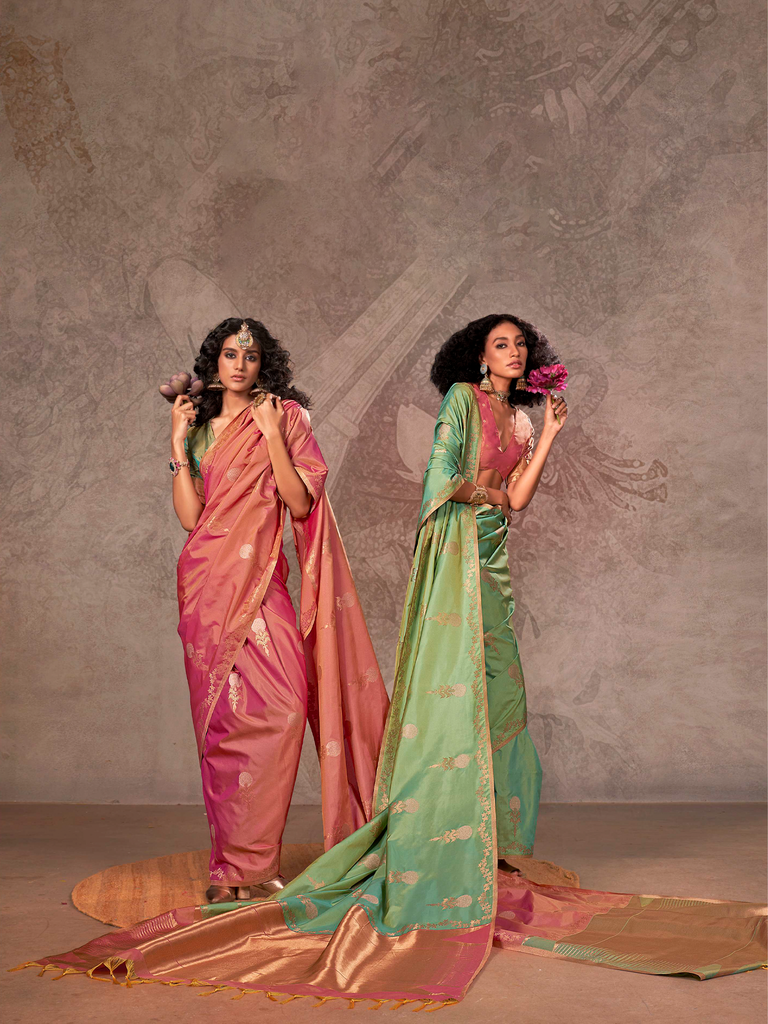 Ethereal Tone Chronicles is a captivating title that embodies the allure and grace of two-toned handloom sarees. This collection could represent a harmonious blend of dual hues, where each saree tells a unique story of elegance and artistry. The interplay of colors evokes a sense of timeless sophistication, while the handloom craftsmanship ensures authenticity and heritage. Perfect for those who appreciate both tradition and modernity, this collection would be ideal for making a statement at any occasion.