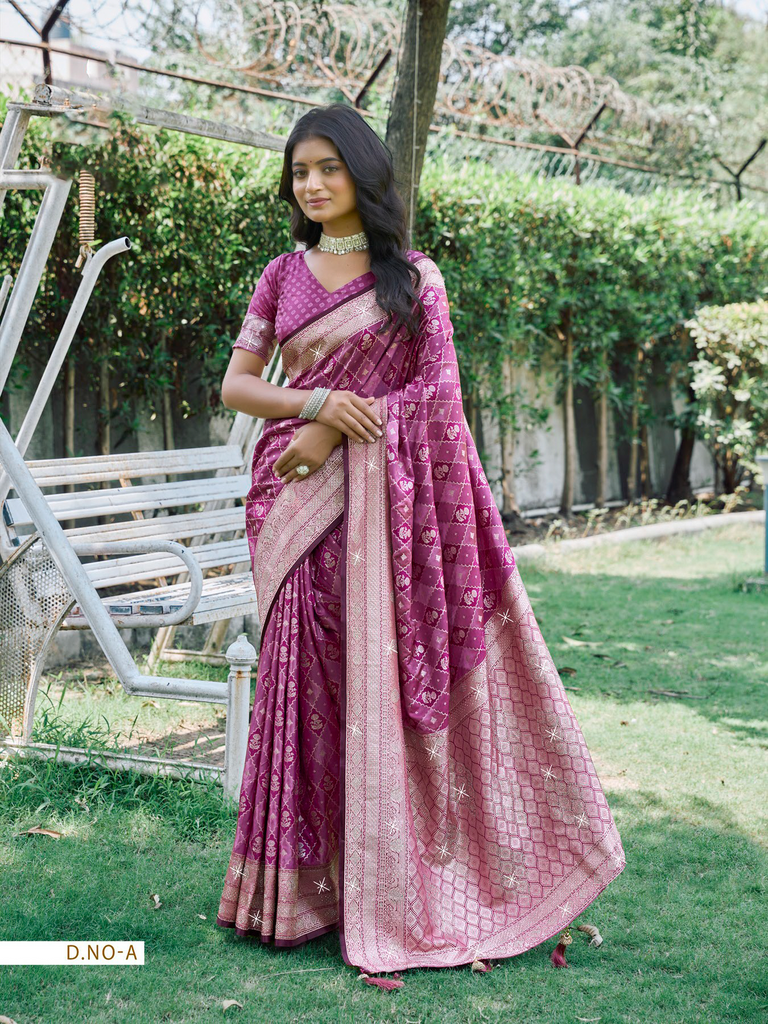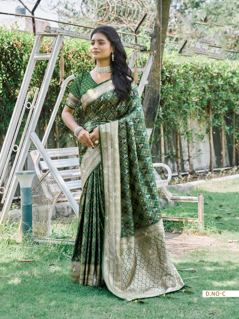 Meticulously crafted designer sarees featuring exquisite diamond work on premium art silk fabric. These vibrant, richly-colored pieces elevate special occasions with their exceptional craftsmanship and luxurious appeal. The perfect statement garment for creating memorable moments at weddings, celebrations, and formal gatherings.