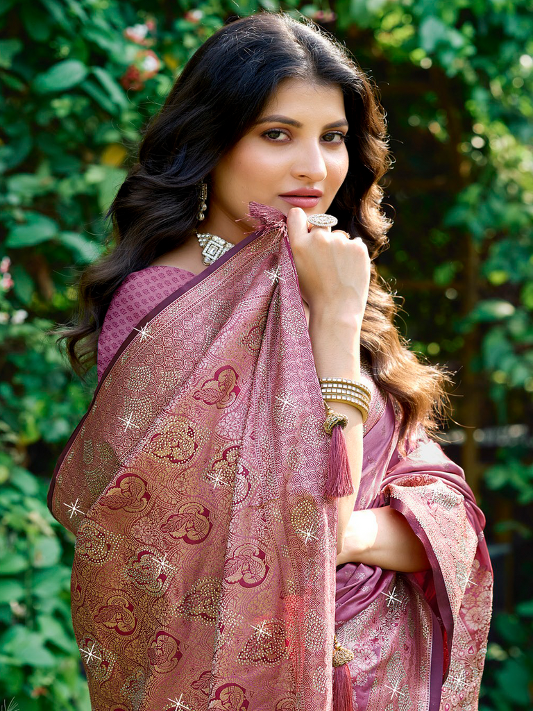 Meticulously crafted designer sarees featuring exquisite diamond work on premium art silk fabric. These vibrant, richly-colored pieces elevate special occasions with their exceptional craftsmanship and luxurious appeal. The perfect statement garment for creating memorable moments at weddings, celebrations, and formal gatherings.