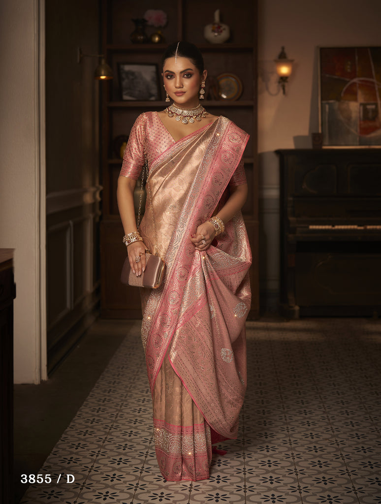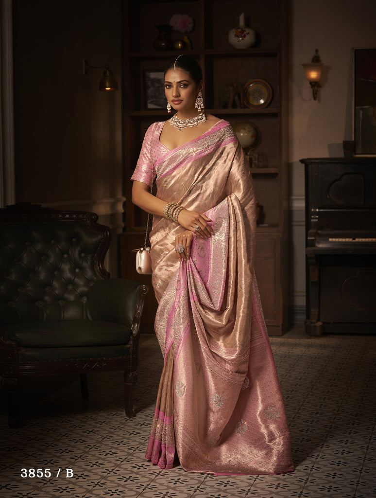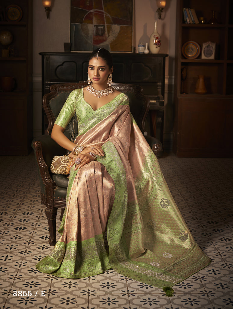 Luxe Bridal Looms: A curated collection of opulent bridal Kanjeevaram sarees that epitomize luxury and craftsmanship. Each piece is adorned with intricate diamond work, shimmering threads, and timeless designs, crafted to make every bride sparkle with elegance on her special day. Perfect for those who seek glamour and sophistication woven into tradition.
