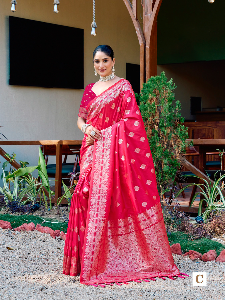 Meticulously crafted Art Silk fabric adorned with premium golden thread work and distinctive designer kathpadar patterns. Ideal for auspicious celebrations, these vibrant textiles offer exceptional quality at accessible prices—available exclusively through Moolchand Mill. Experience efficient nationwide delivery within 2-5 days across India. Elevate your ceremonial attire with this perfect blend of traditional artistry and contemporary elegance.