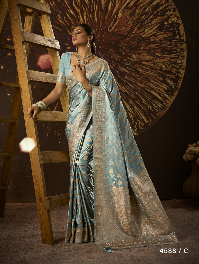 Majestic Katan Glow is a luxurious bridal saree collection crafted from premium Katan silk, known for its rich texture and elegant drape. These sarees feature intricate zari weaving, delicate embroidery, and traditional motifs that exude regal charm. Inspired by heritage craftsmanship, they blend timeless elegance with modern sophistication, making them perfect for weddings and grand celebrations.