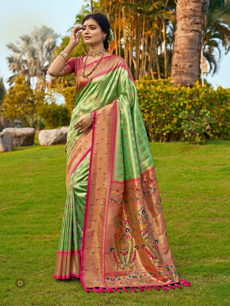 Crafted with precision, our Kanjeevaram art silk sarees showcase vibrant color palettes that honor South Indian textile traditions. These festive garments feature distinctive temple borders and intricate motifs characteristic of authentic Kanjeevaram craftsmanship. The lustrous finish and sumptuous drape make these sarees ideal for weddings, religious ceremonies, and cultural celebrations.