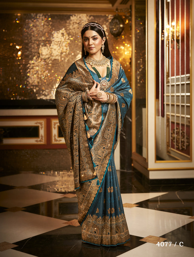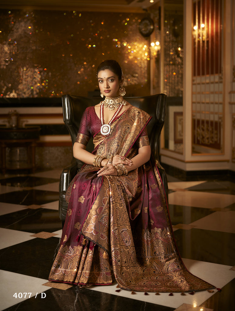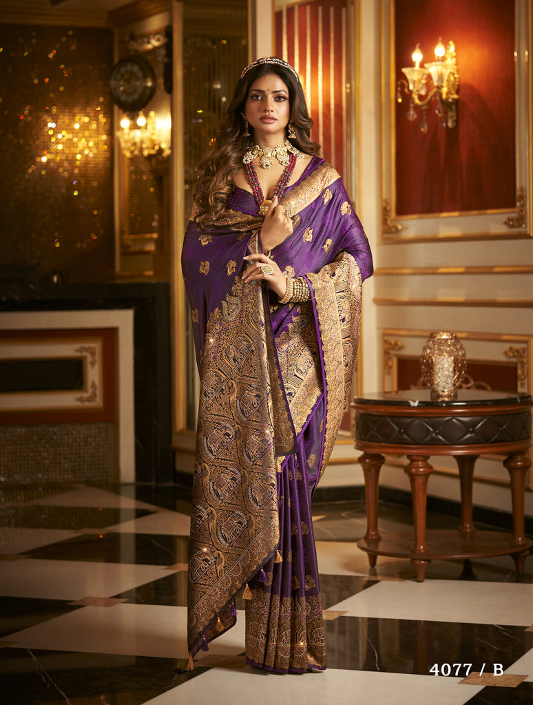 With its sumptuous satin fabric and dazzling diamond work, this Banarasi saree promises to elevate any wedding occasion to a new level of splendor. Delight your loved ones with a gift that reflects timeless elegance and intricate craftsmanship. Watch as they radiate grace and beauty, making unforgettable memories in this exquisite attire.