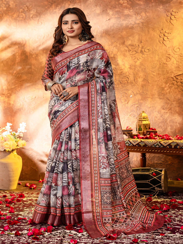 Discover the elegance of our Aaradhana sarees, crafted from pure linen and enhanced with delicate lace detailing. Perfect for gifting, these South sarees blend traditional charm with sophisticated style, offering comfort and grace for special occasions. Elevate your wardrobe or present a timeless gift with this refined collection.