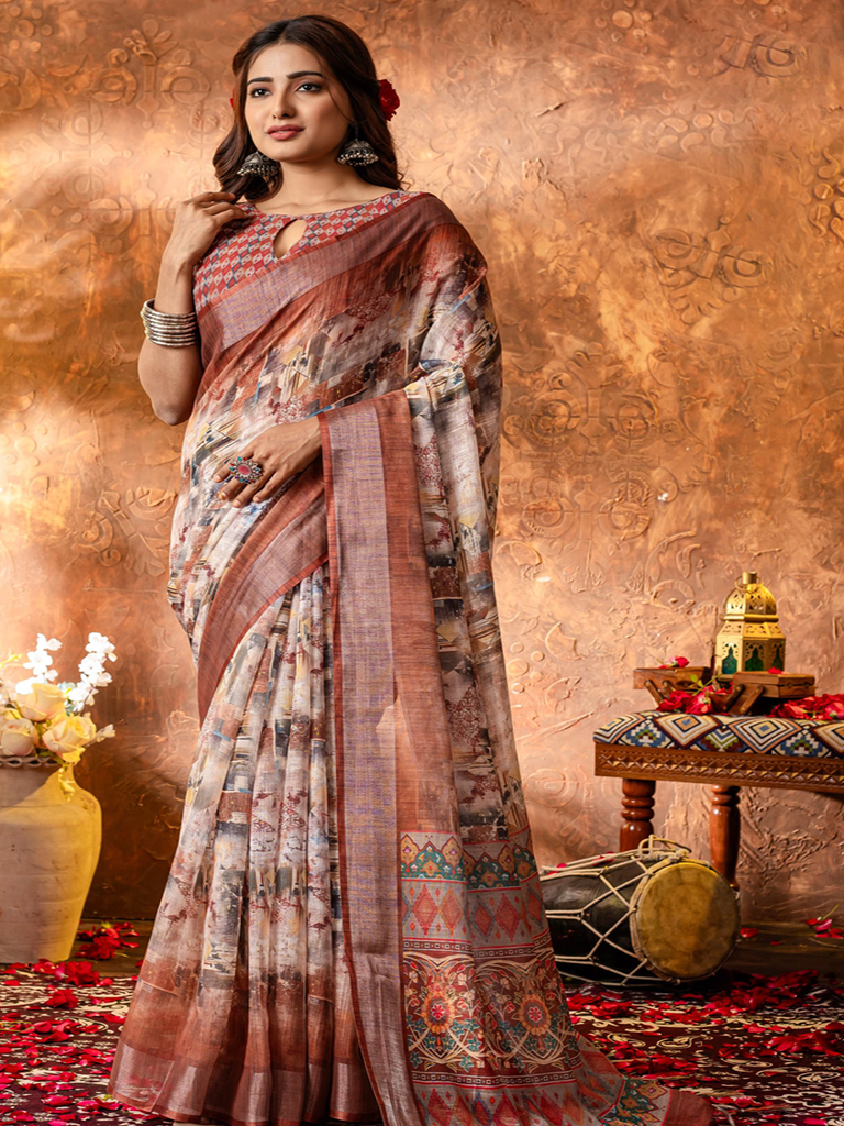 Discover the elegance of our Aaradhana sarees, crafted from pure linen and enhanced with delicate lace detailing. Perfect for gifting, these South sarees blend traditional charm with sophisticated style, offering comfort and grace for special occasions. Elevate your wardrobe or present a timeless gift with this refined collection.