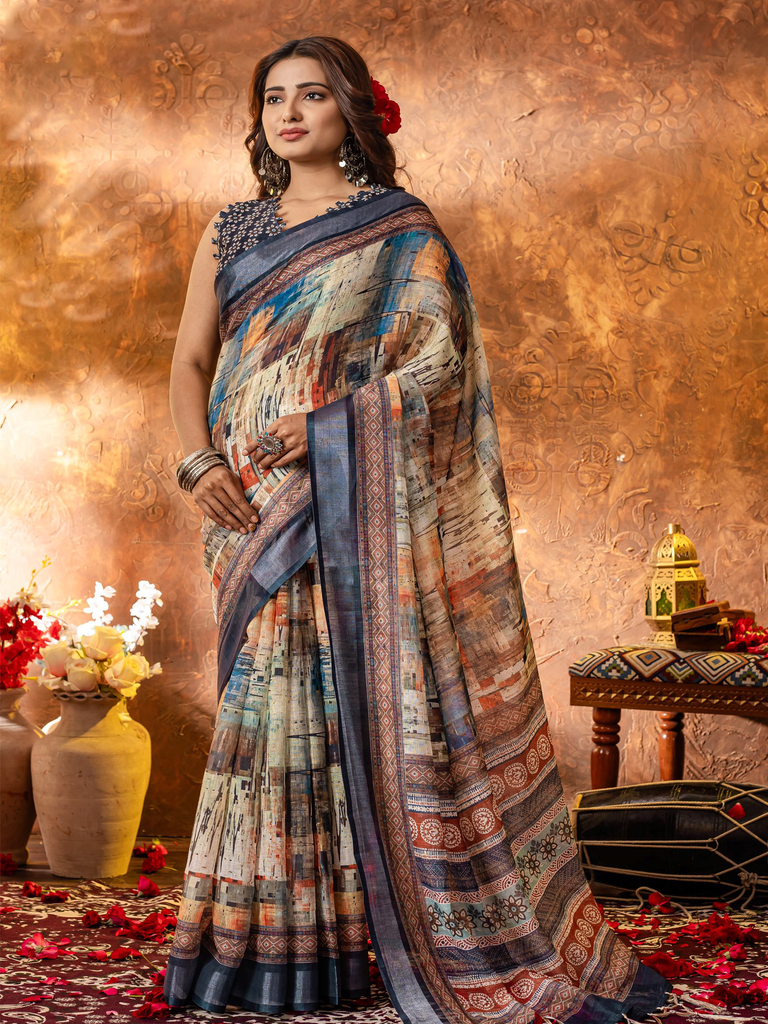 Discover the elegance of our Aaradhana sarees, crafted from pure linen and enhanced with delicate lace detailing. Perfect for gifting, these South sarees blend traditional charm with sophisticated style, offering comfort and grace for special occasions. Elevate your wardrobe or present a timeless gift with this refined collection.
