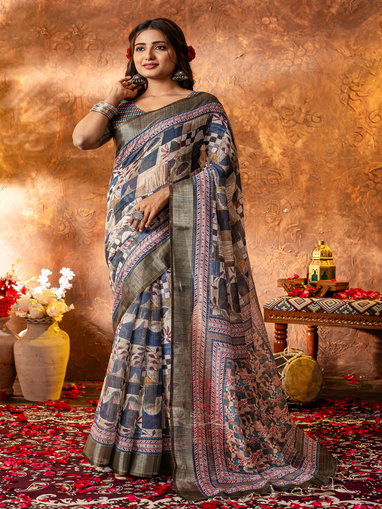 Discover the elegance of our Aaradhana sarees, crafted from pure linen and enhanced with delicate lace detailing. Perfect for gifting, these South sarees blend traditional charm with sophisticated style, offering comfort and grace for special occasions. Elevate your wardrobe or present a timeless gift with this refined collection.