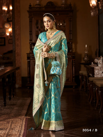 Celebrate tradition with a touch of sophistication through this exquisite organza saree, adorned with authentic Kathpadar artistry. The translucent fabric, known for its lightweight and luxurious feel, enhances the beauty of its intricate borders and motifs. The timeless patterns pay homage to cultural heritage, while the subtle shimmer of the saree lends a refined charm. Perfect for weddings, festivals, or cultural celebrations, this saree is a masterpiece of grace and tradition.