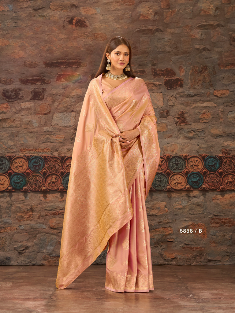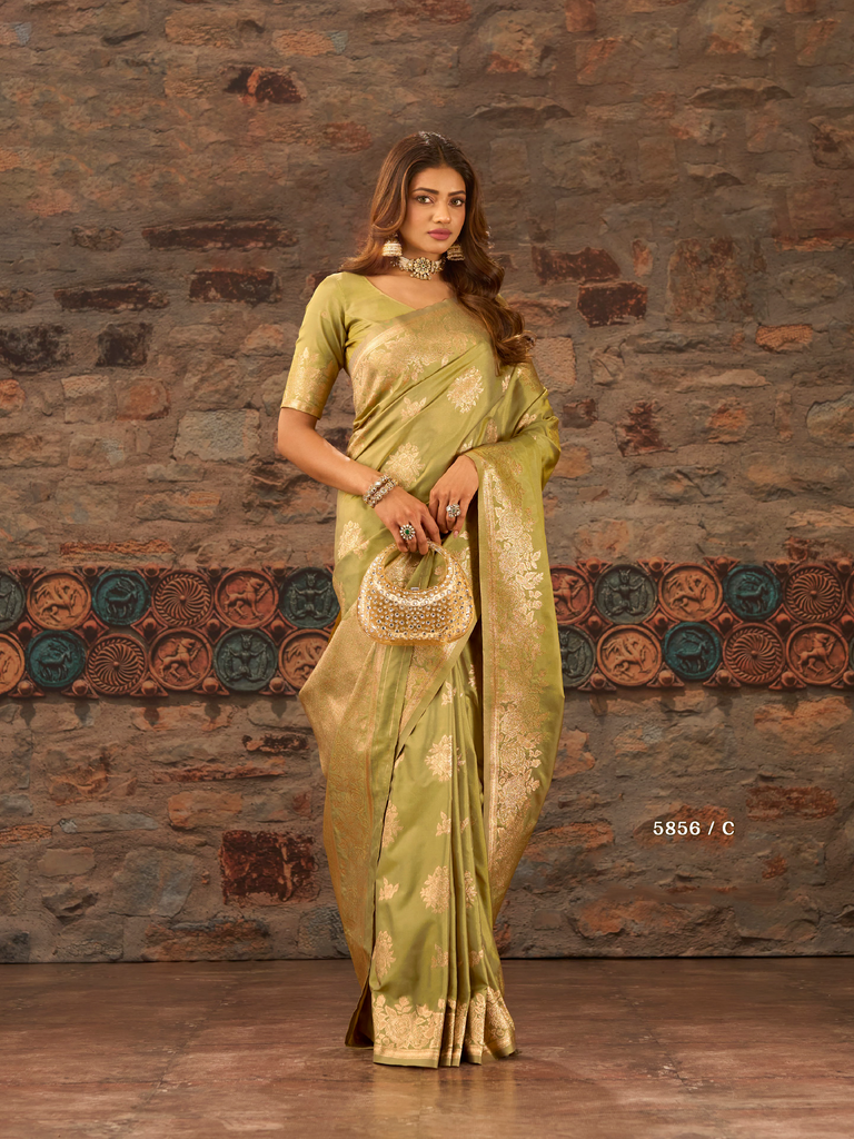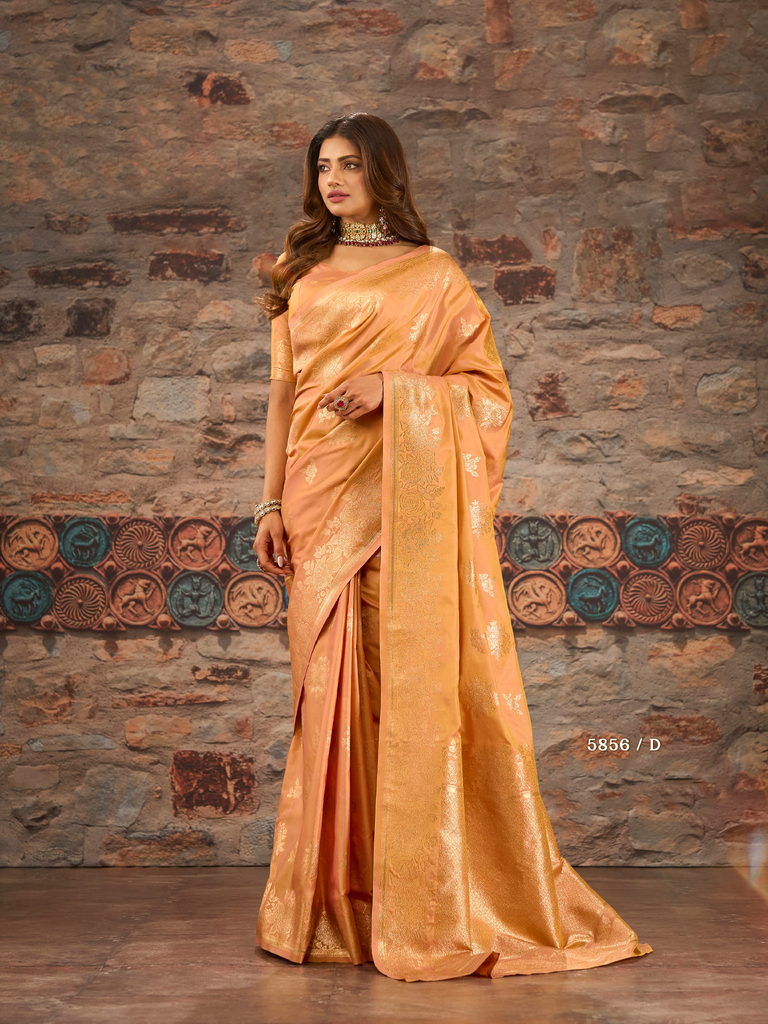 Elevate your festive and wedding wardrobe with these exquisite organza sarees, featuring intricate golden work butti and bordered detailing. Crafted to blend classic elegance with contemporary charm, they offer a sophisticated drape that enhances your presence at any celebration. Perfect for those seeking timeless style and refined craftsmanship.
