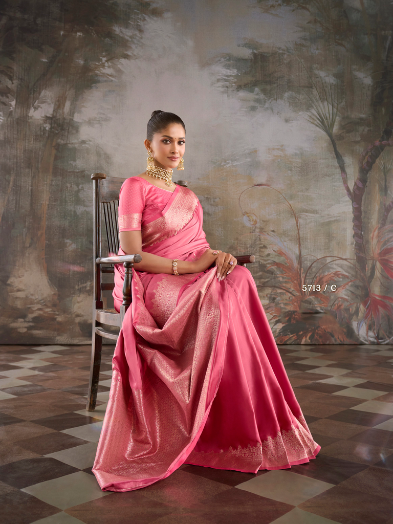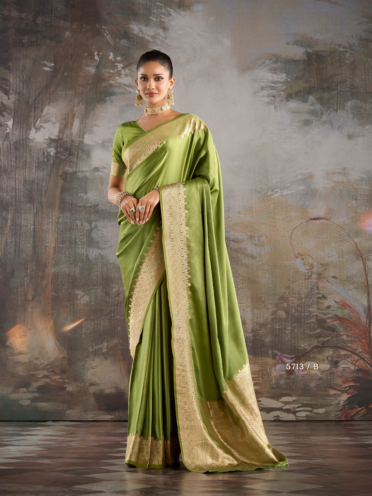 Experience the elegance of tradition with this Neo-Tradition Drape crafted in luxurious satin. Featuring intricate Banarasi-style buttis and a rich copper thread border, it showcases vibrant colors that bring a contemporary flair to classic craftsmanship. Perfect for those who appreciate fine artistry and timeless sophistication.