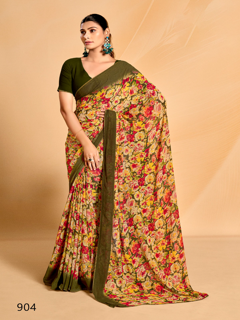 "Luxe Lace Chronicles" is a curated collection of exquisite georgette sarees that blend luxury with timeless elegance. Each piece features delicate lace borders that add a touch of sophistication and charm to the flowing georgette fabric. Designed for those who appreciate refinement and high fashion, this collection embodies grace and poise, making it perfect for any occasion. With an emphasis on craftsmanship and attention to detail, "Luxe Lace Chronicles" brings you sarees that narrate stories of beauty, elegance, and unparalleled luxury in every drape.