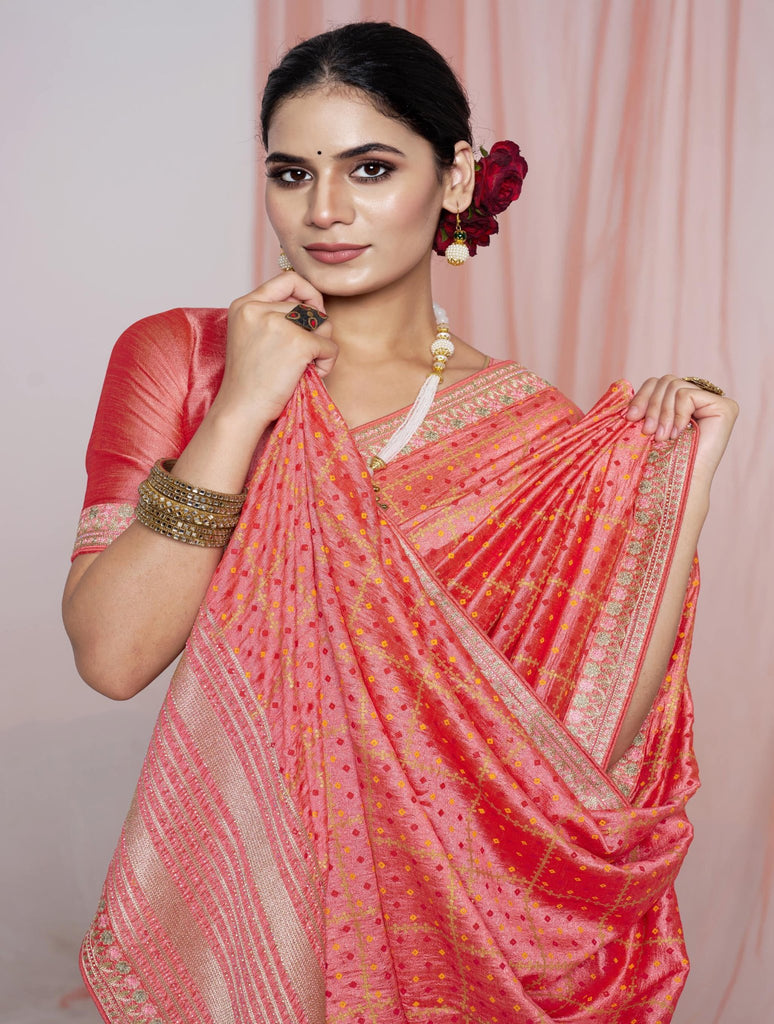 Traditional Bandhani sarees often feature elaborate motifs like flowers, peacocks, and paisleys, as well as abstract designs. These motifs are meticulously crafted, showcasing the artistry and skill of the craftsmen.