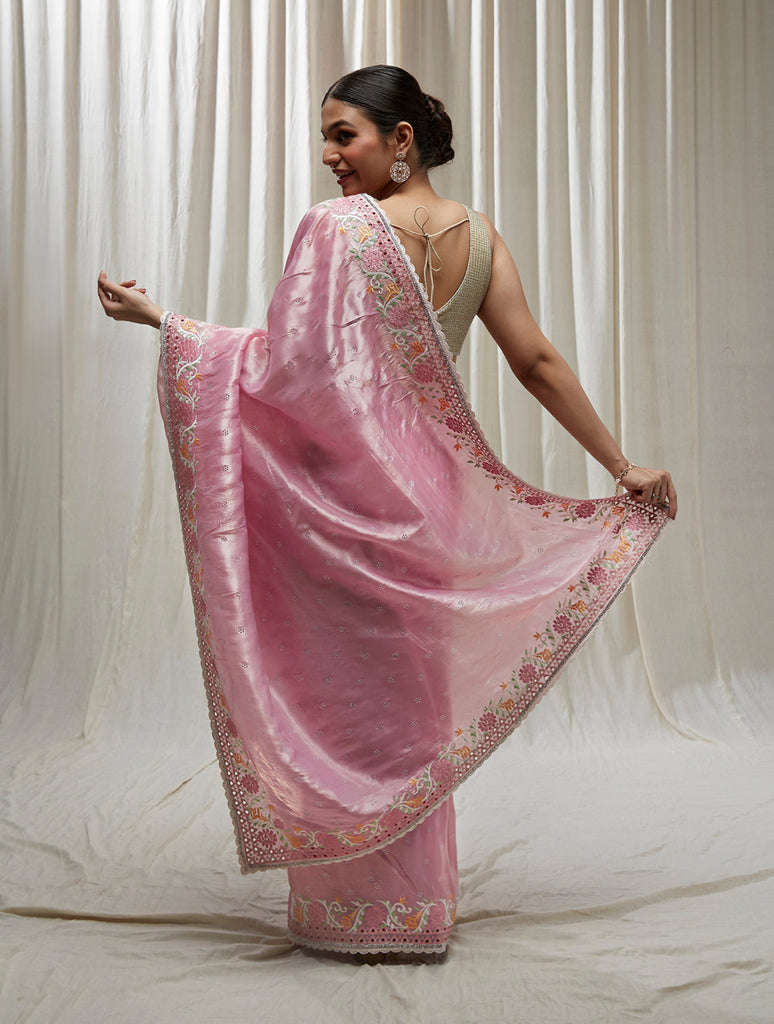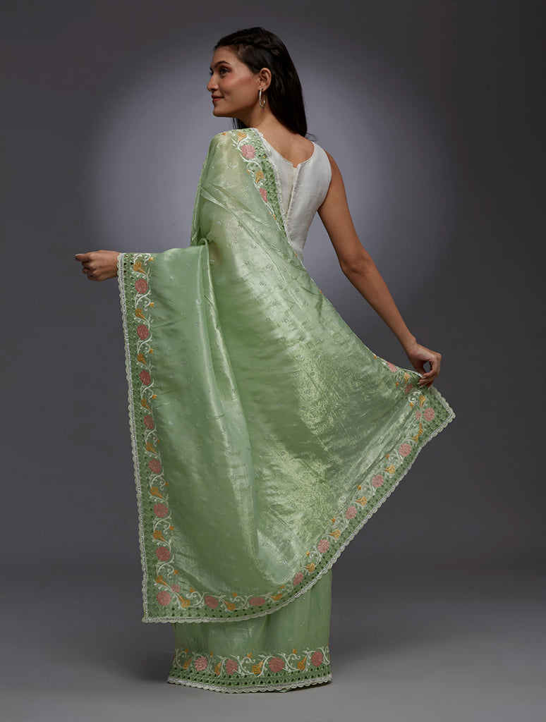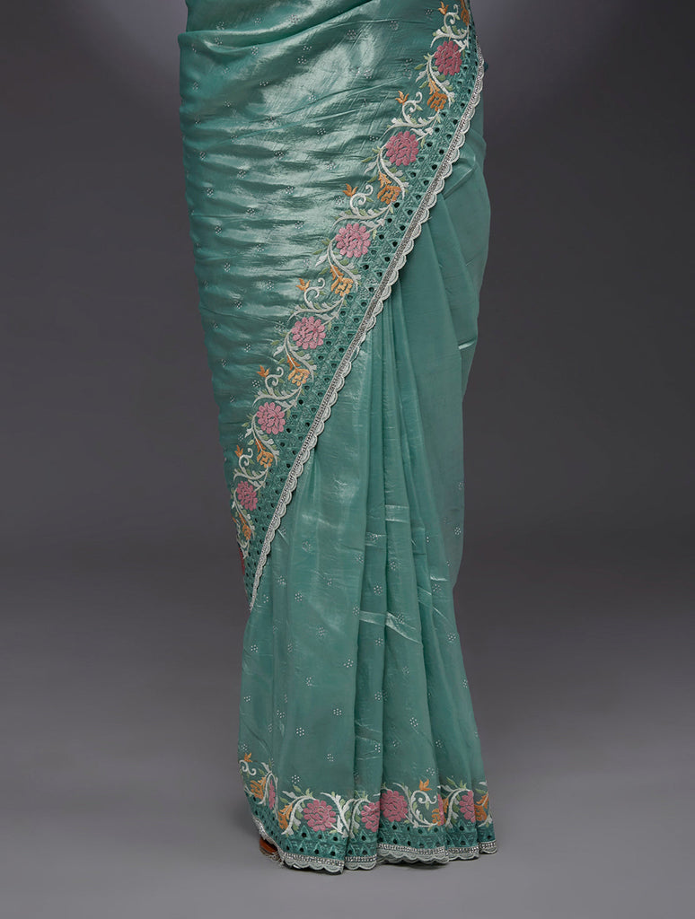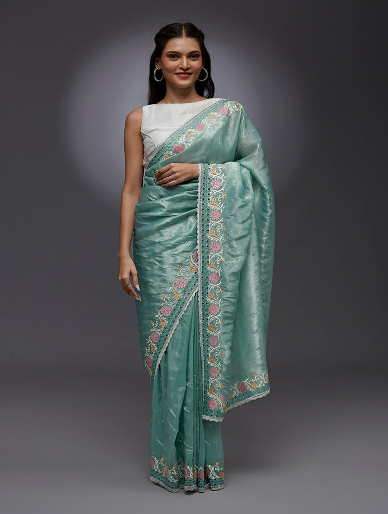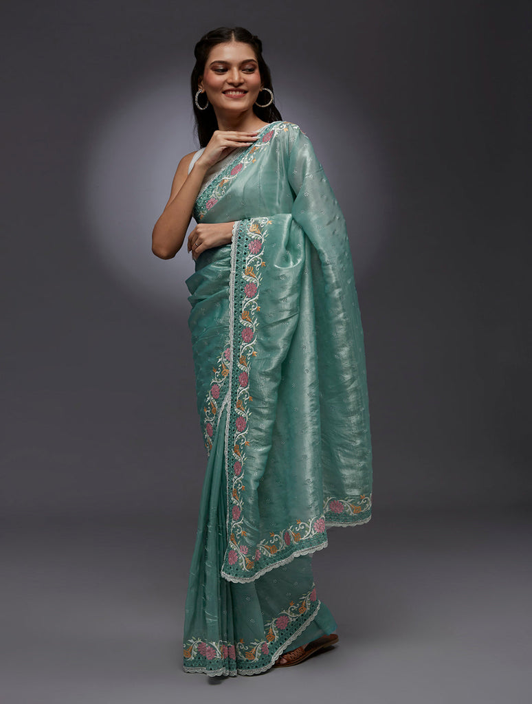 An organza saree is an elegant and lightweight traditional Indian garment made from organza fabric, known for its sheer, crisp, and airy texture. It is woven with fine silk or synthetic fibers, giving it a delicate sheen and smooth finish. These sarees are cherished for their sophistication and are often adorned with intricate embroidery, zari work, or hand-painted designs. They drape beautifully, exuding a graceful charm perfect for festive occasions, weddings, or formal events.