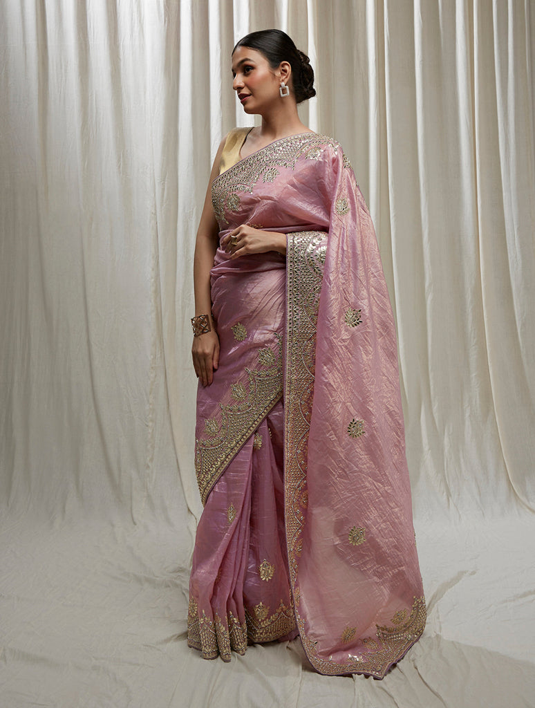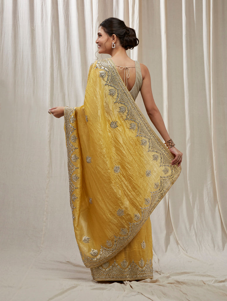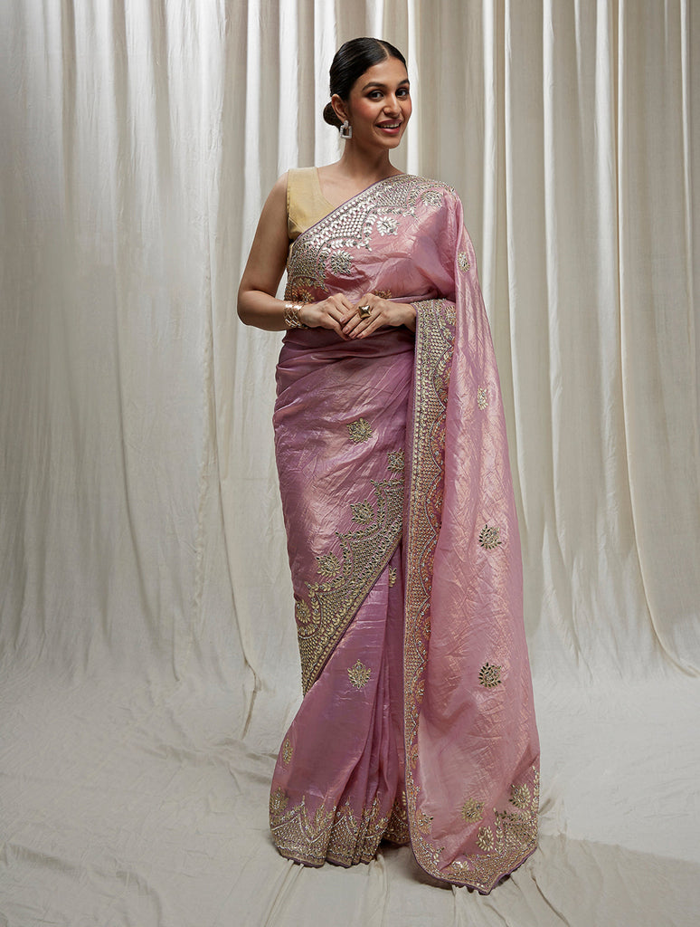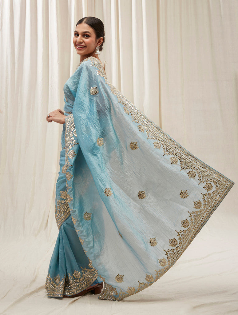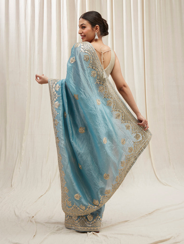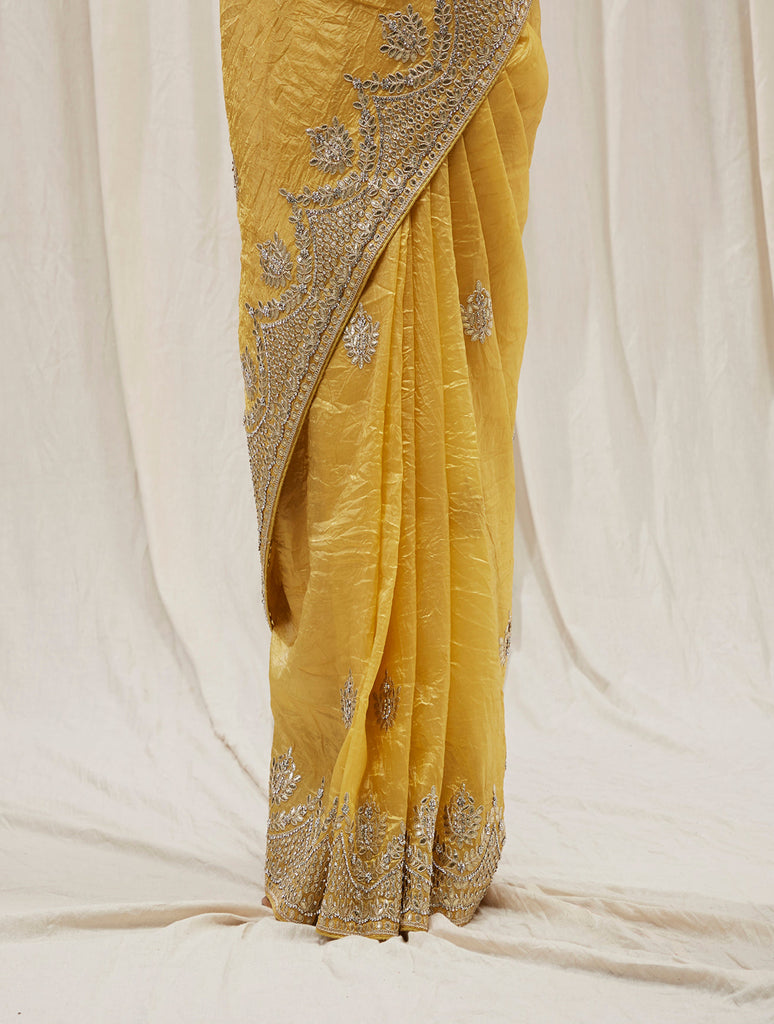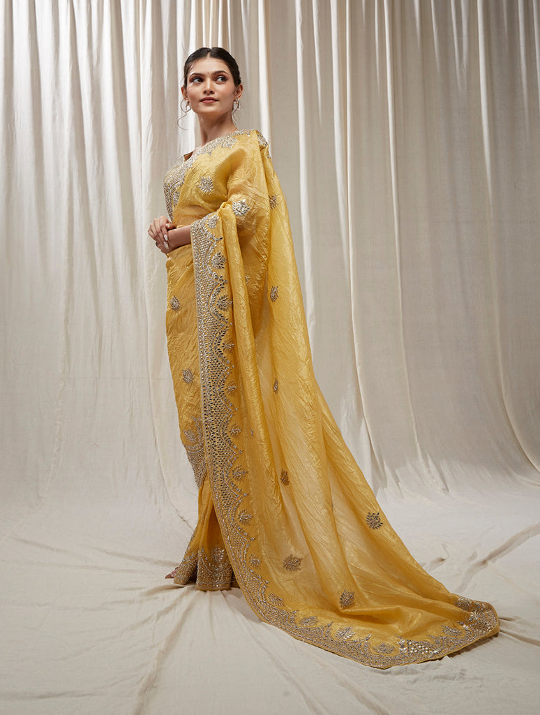 An organza saree is an elegant and lightweight traditional Indian garment made from organza fabric, known for its sheer, crisp, and airy texture. It is woven with fine silk or synthetic fibers, giving it a delicate sheen and smooth finish. These sarees are cherished for their sophistication and are often adorned with intricate embroidery, zari work, or hand-painted designs. They drape beautifully, exuding a graceful charm perfect for festive occasions, weddings, or formal events.