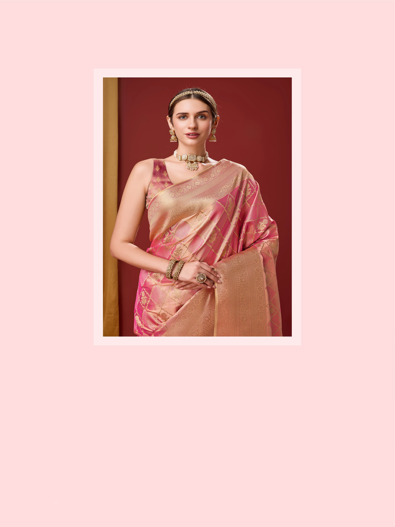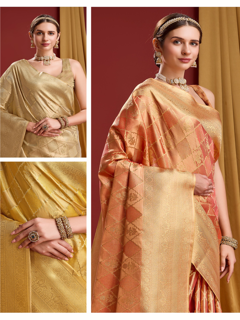 "Exquisite Heritage" celebrates the timeless allure of South Indian traditional sarees. Crafted with intricate artistry and luxurious tissue silk, each piece reflects the rich cultural legacy and impeccable elegance that define these ensembles. Perfect for showcasing grace and sophistication, these sarees are a tribute to the enduring beauty of tradition.