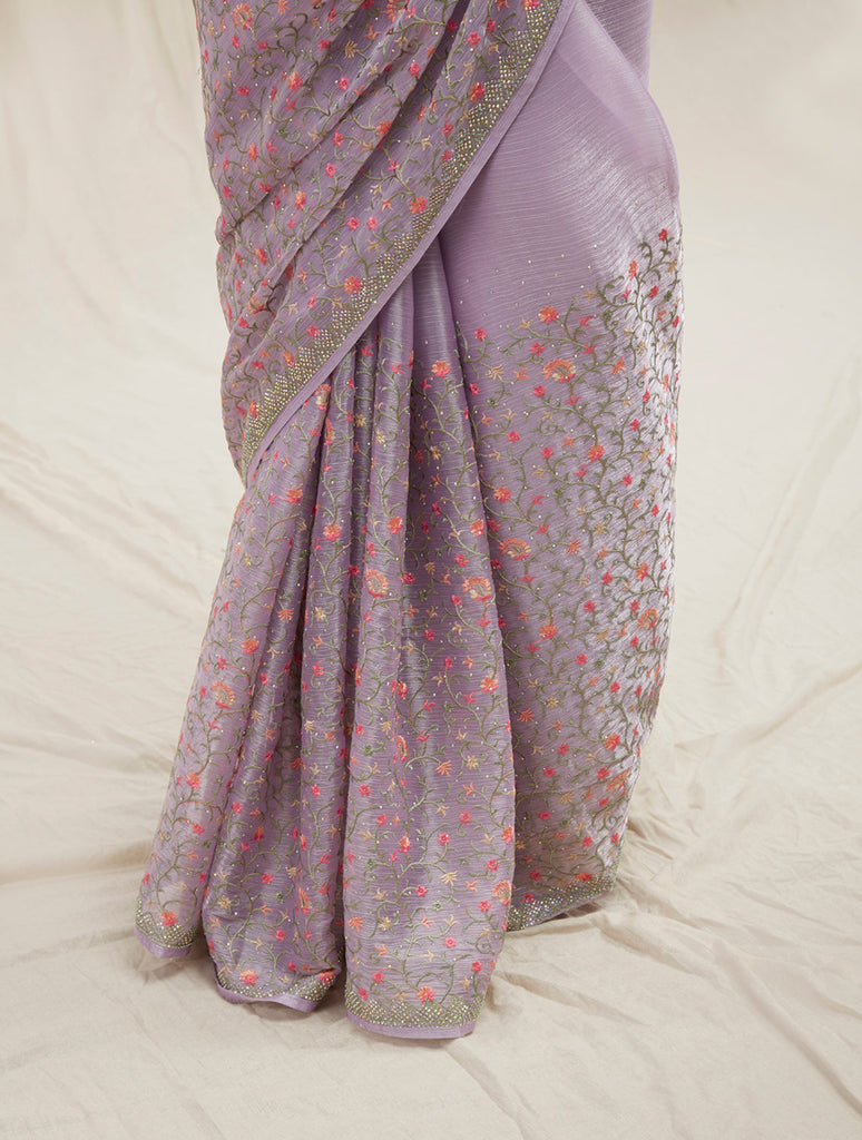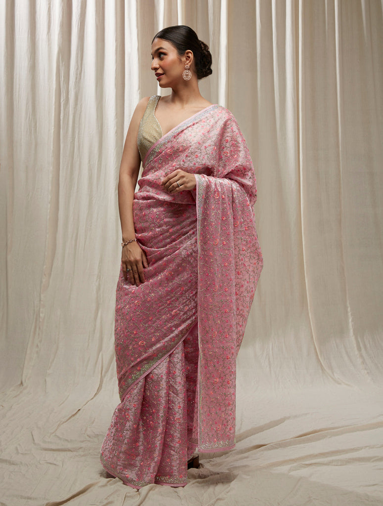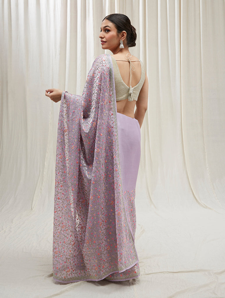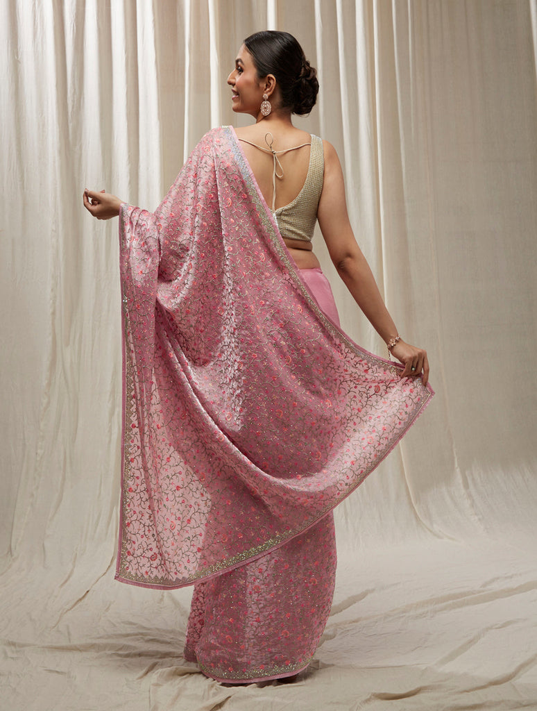 Georgette is a lightweight, sheer fabric known for its soft and flowy texture, making it a popular choice for designer sarees. Its slightly rough surface provides a unique drape that enhances the elegance of the garment. The fabric is durable and versatile, allowing intricate embroidery, prints, and embellishments to be incorporated seamlessly. Ideal for festive wear and parties, georgette sarees come in vibrant colors and can feature stunning borders adorned with zari, sequins, or beadwork. The material’s breathable nature ensures comfort while maintaining a chic and sophisticated look, making it perfect for both day and evening events.