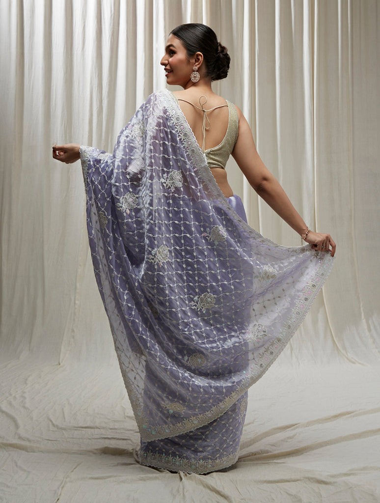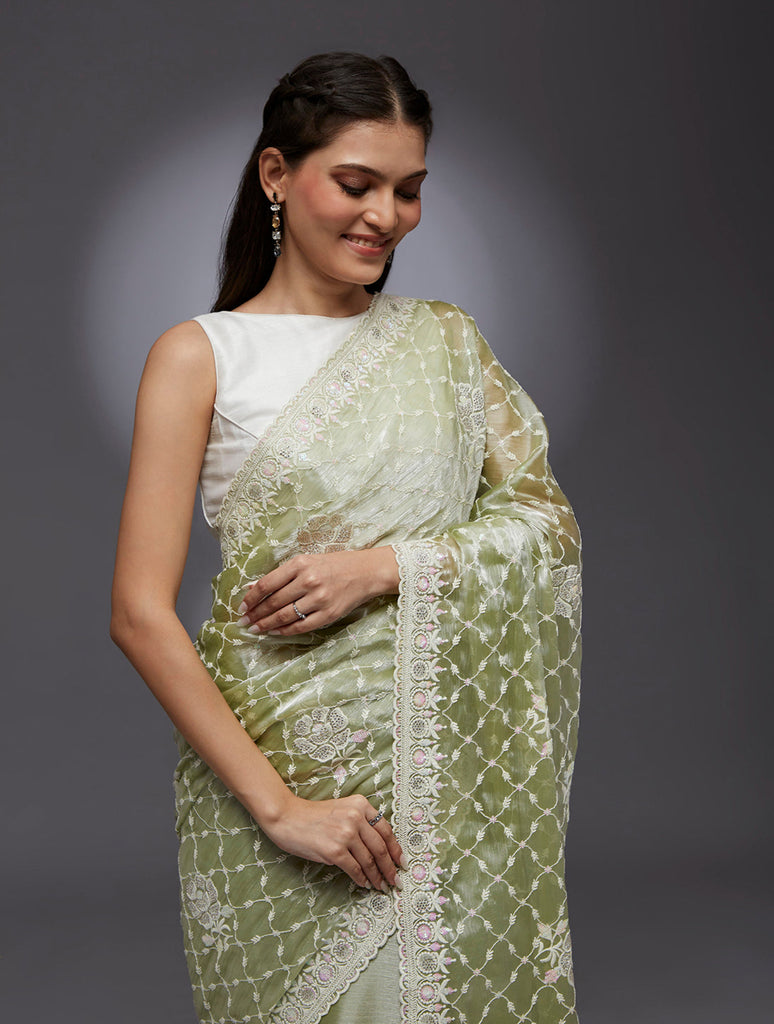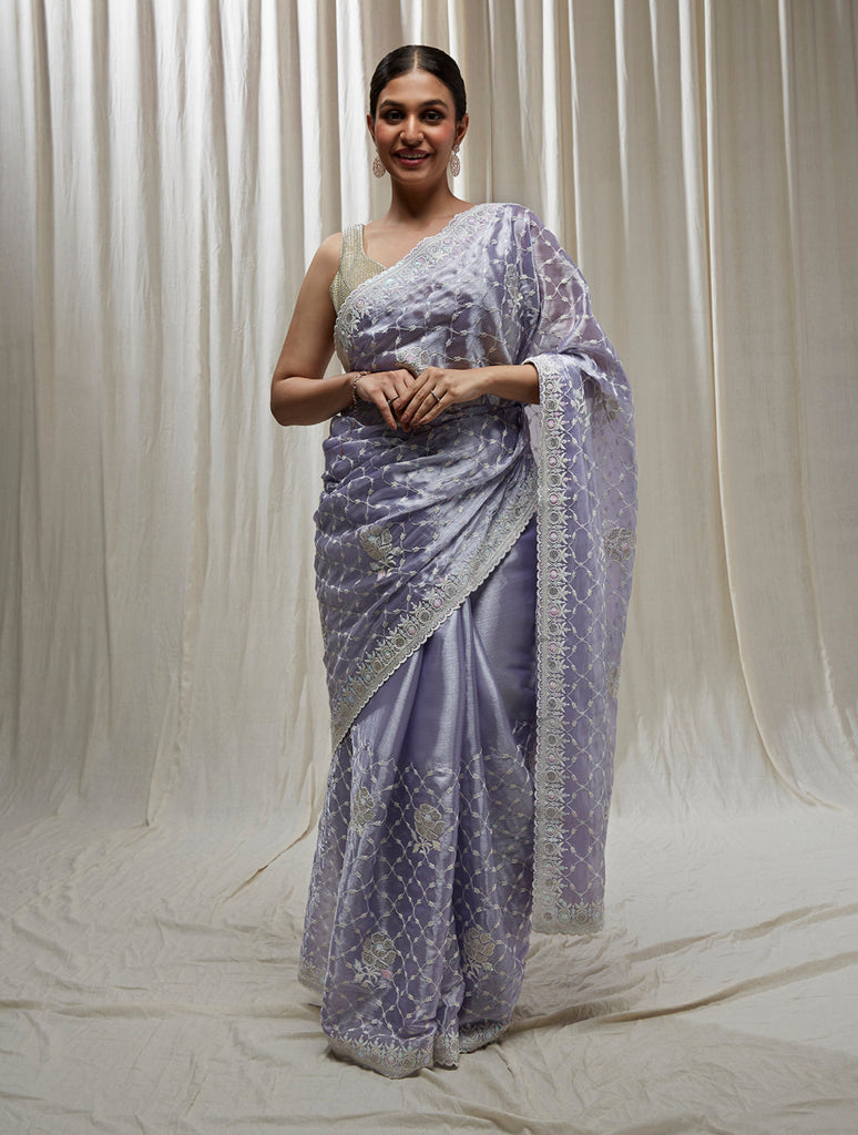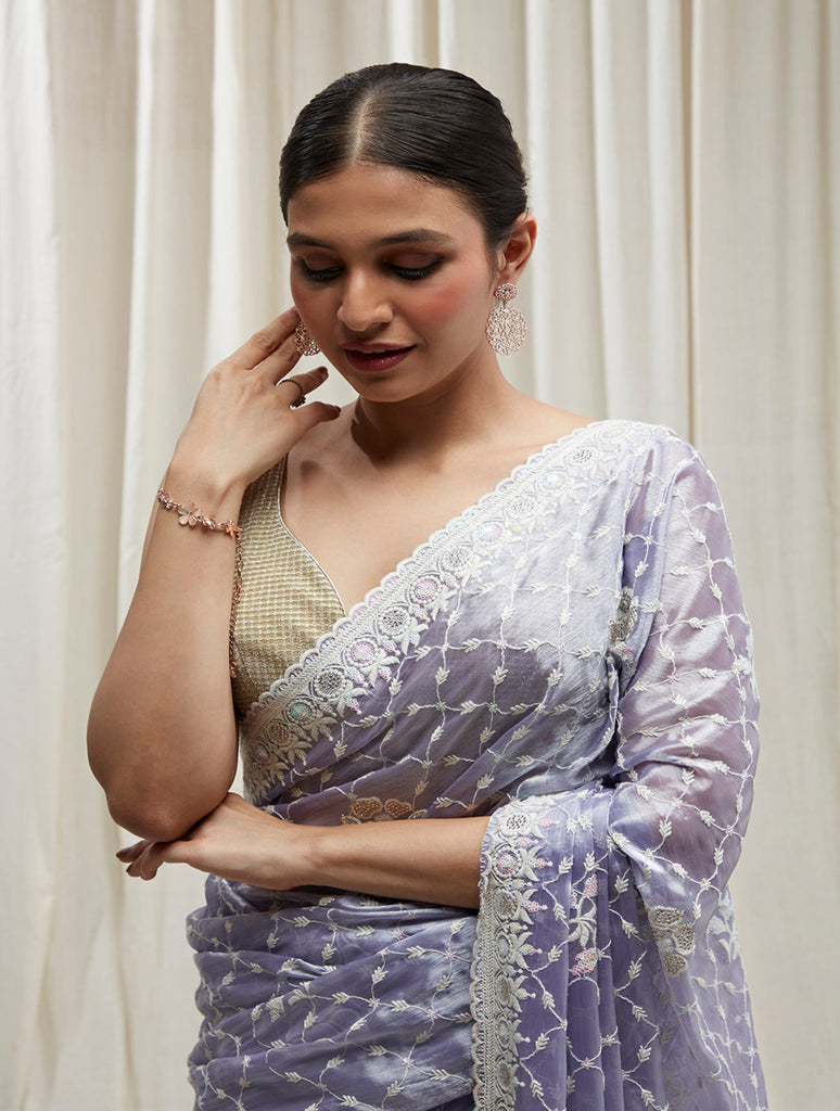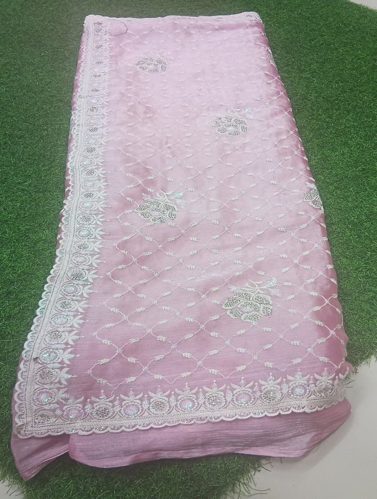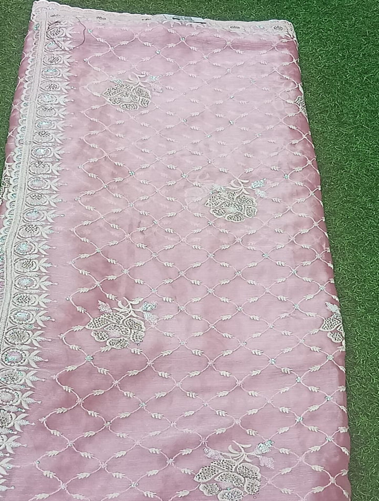 An organza saree is an elegant and lightweight traditional Indian garment made from organza fabric, known for its sheer, crisp, and airy texture. It is woven with fine silk or synthetic fibers, giving it a delicate sheen and smooth finish. These sarees are cherished for their sophistication and are often adorned with intricate embroidery, zari work, or hand-painted designs. They drape beautifully, exuding a graceful charm perfect for festive occasions, weddings, or formal events.