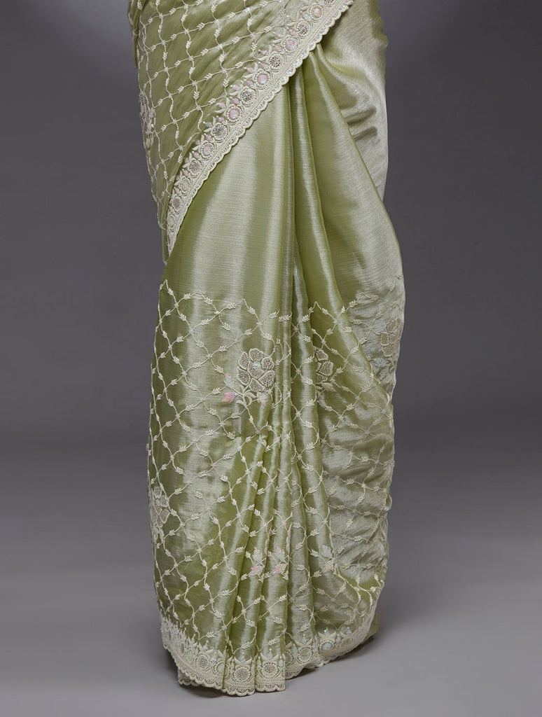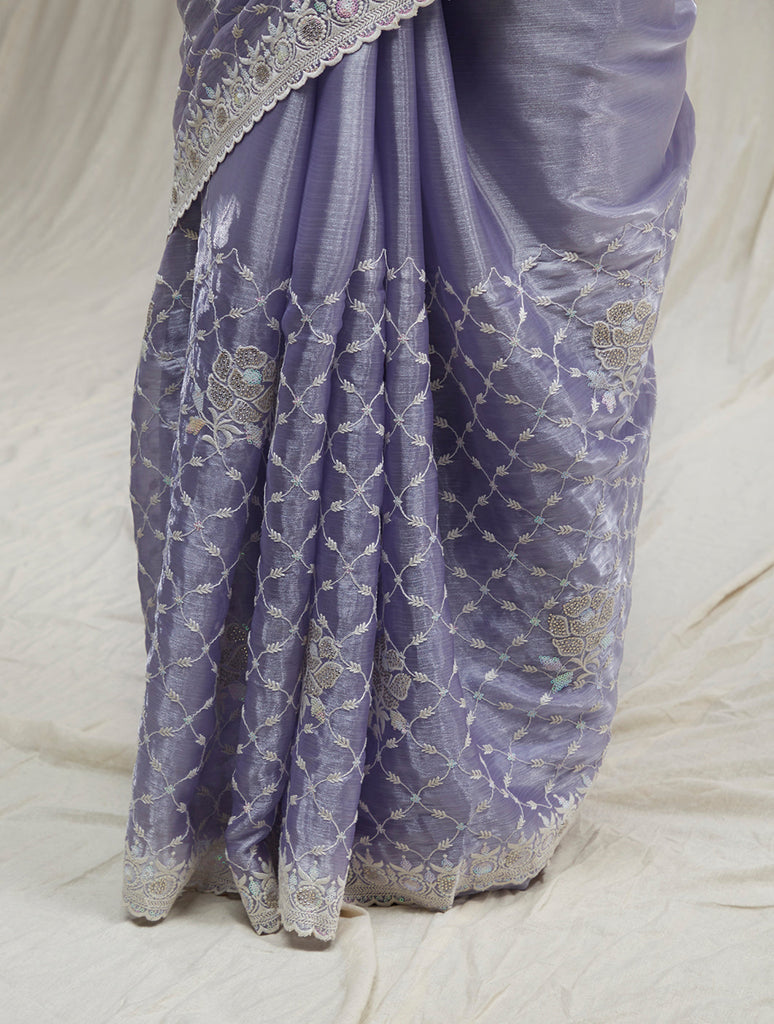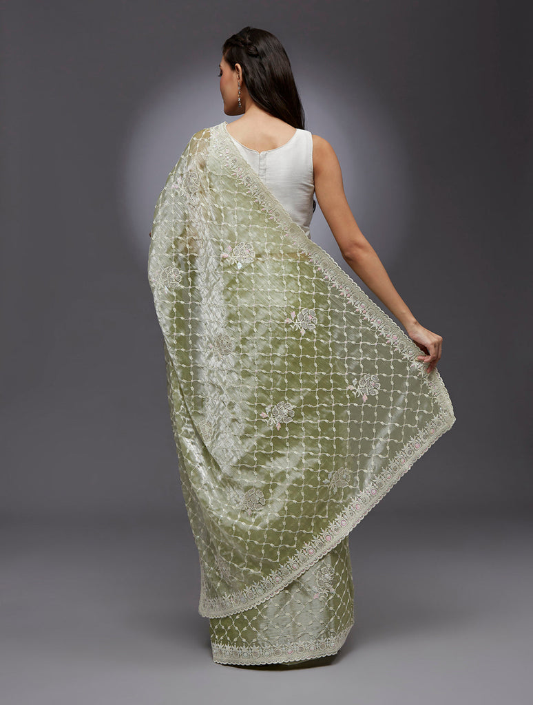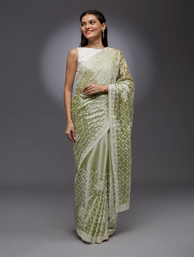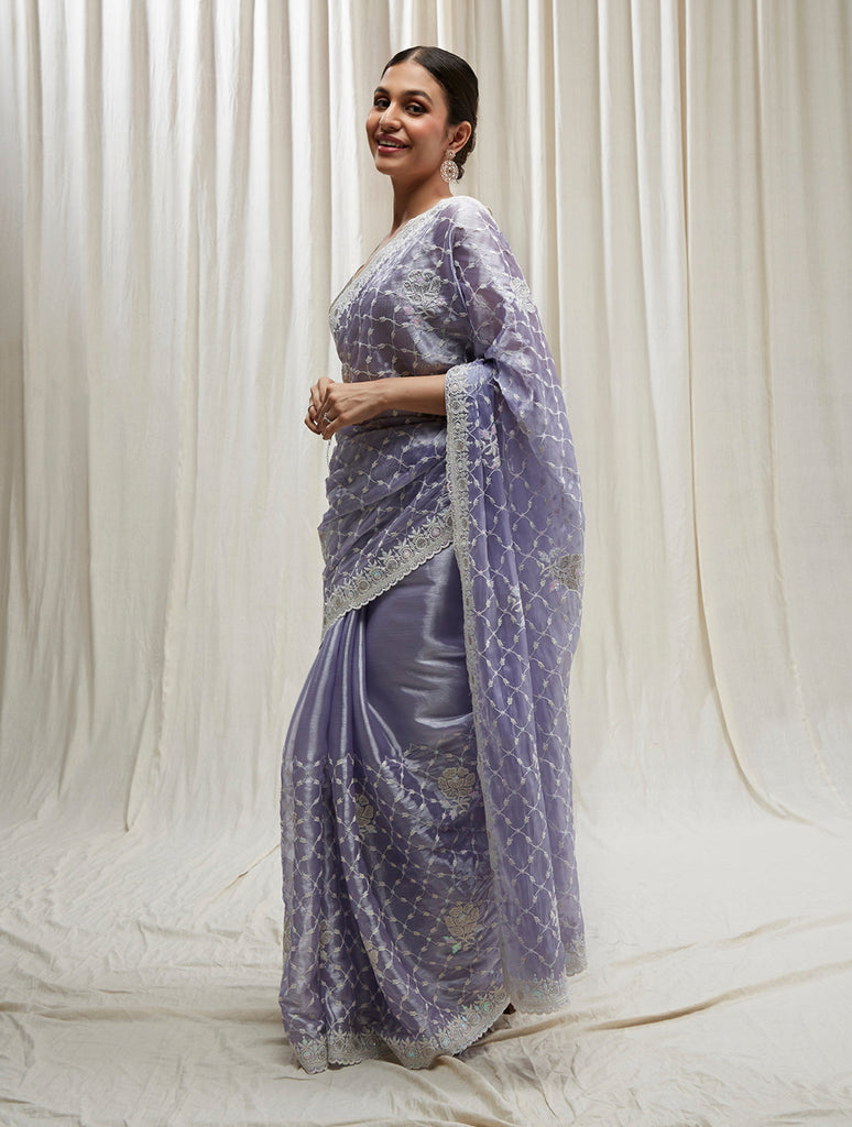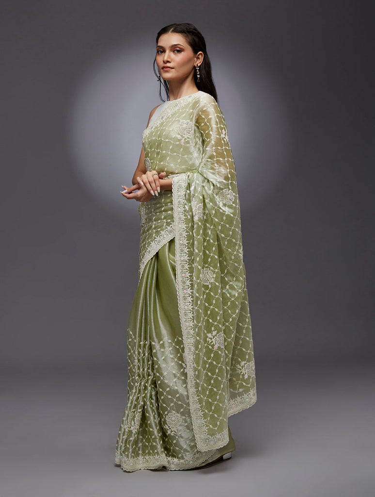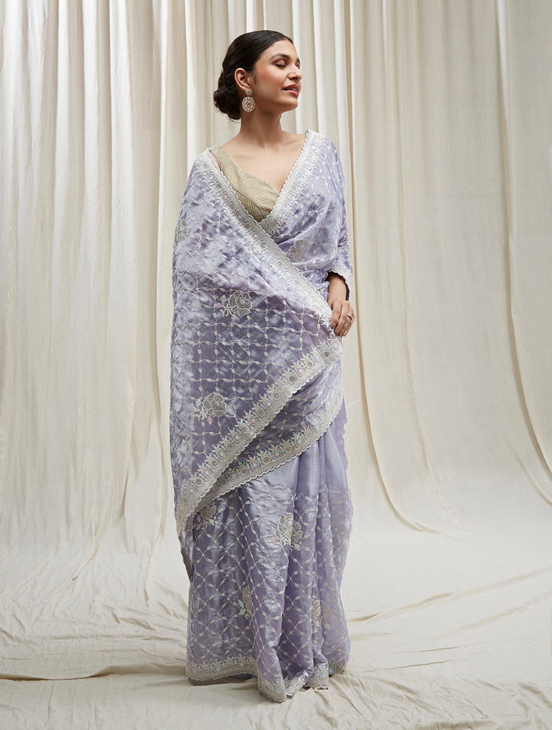 An organza saree is an elegant and lightweight traditional Indian garment made from organza fabric, known for its sheer, crisp, and airy texture. It is woven with fine silk or synthetic fibers, giving it a delicate sheen and smooth finish. These sarees are cherished for their sophistication and are often adorned with intricate embroidery, zari work, or hand-painted designs. They drape beautifully, exuding a graceful charm perfect for festive occasions, weddings, or formal events.