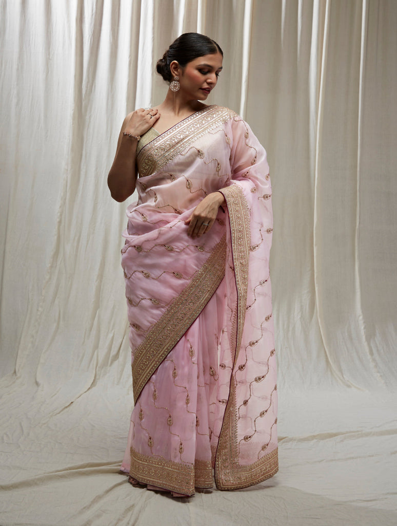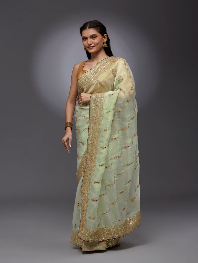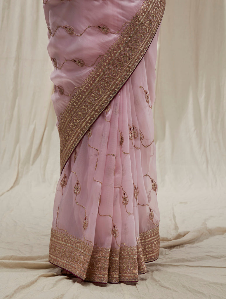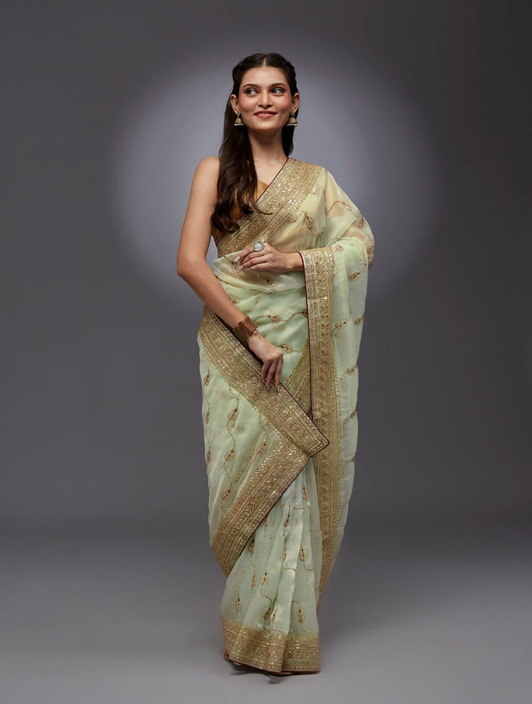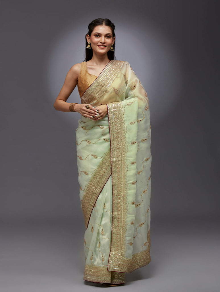 Georgette is a lightweight, sheer fabric known for its soft and flowy texture, making it a popular choice for designer sarees. Its slightly rough surface provides a unique drape that enhances the elegance of the garment. The fabric is durable and versatile, allowing intricate embroidery, prints, and embellishments to be incorporated seamlessly. Ideal for festive wear and parties, georgette sarees come in vibrant colors and can feature stunning borders adorned with zari, sequins, or beadwork. The material’s breathable nature ensures comfort while maintaining a chic and sophisticated look, making it perfect for both day and evening events.