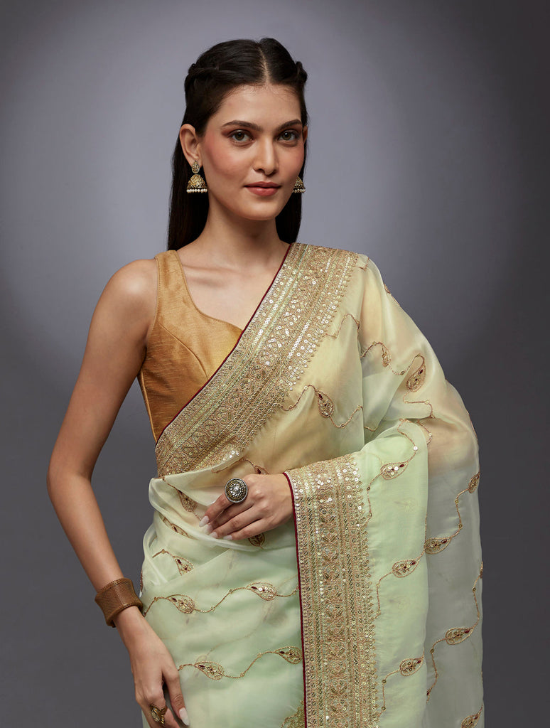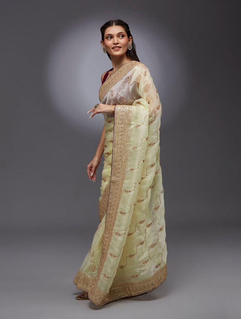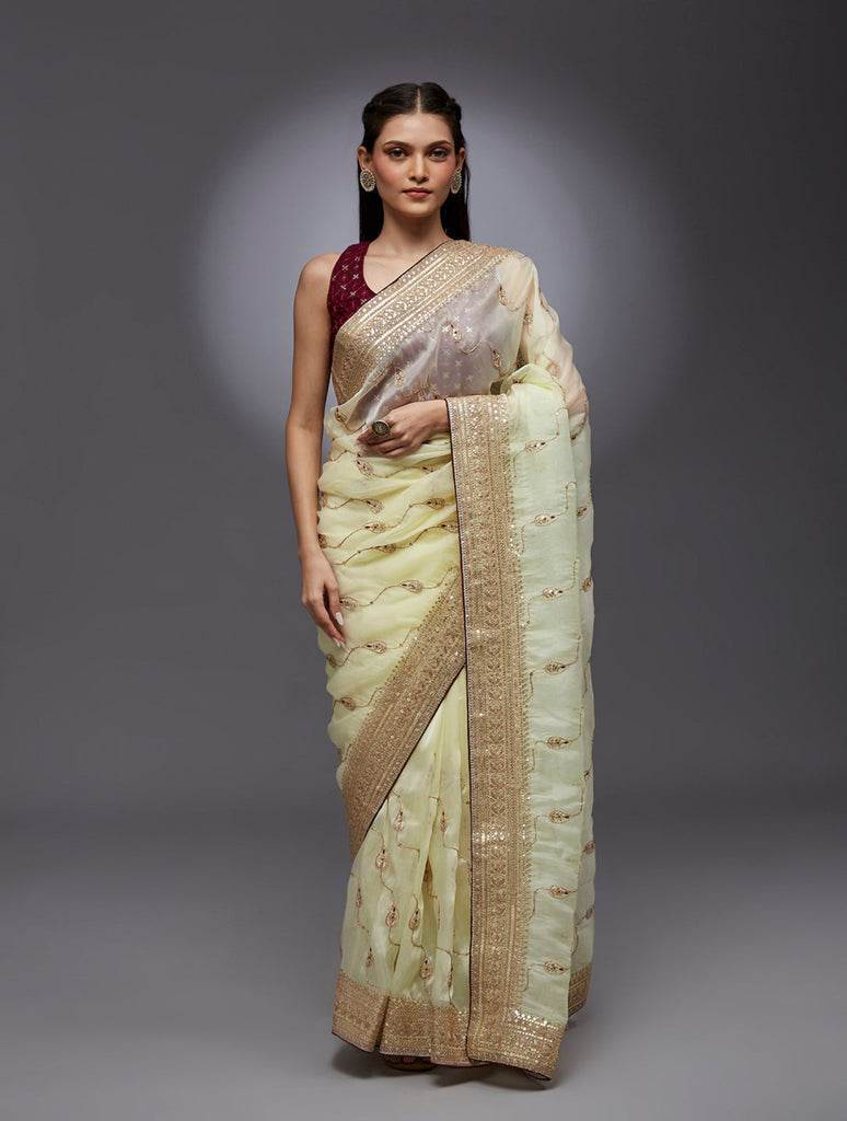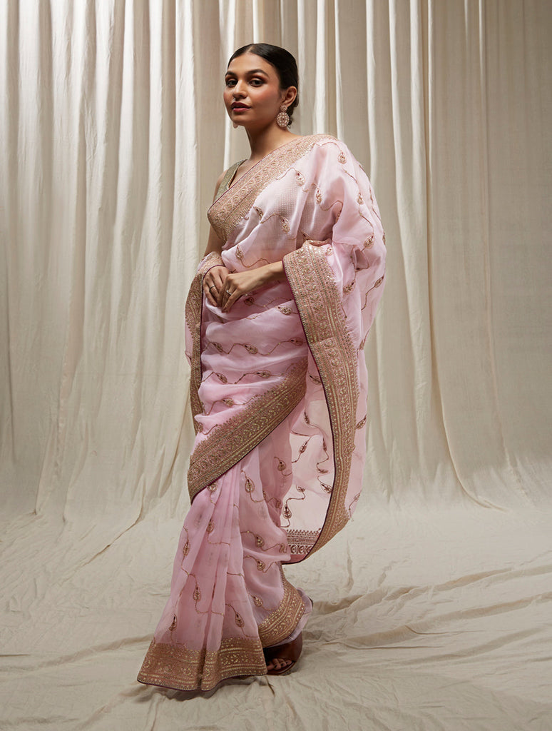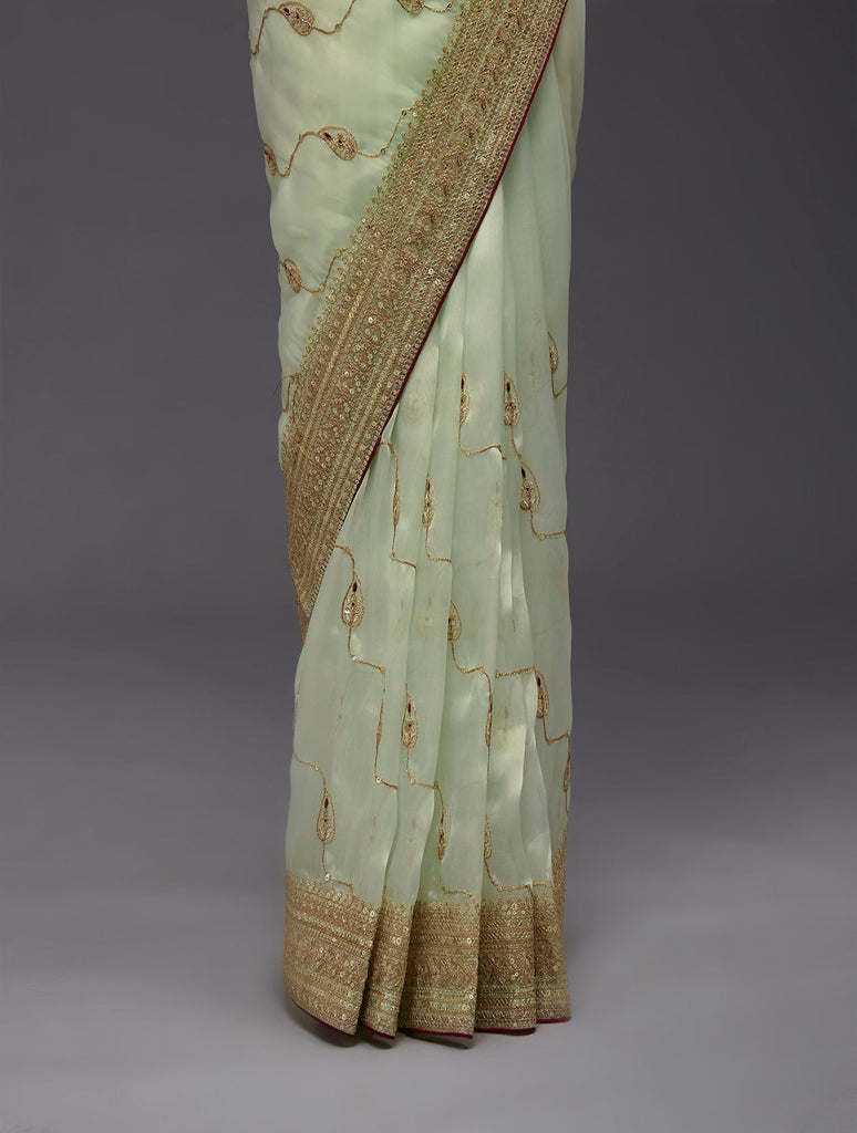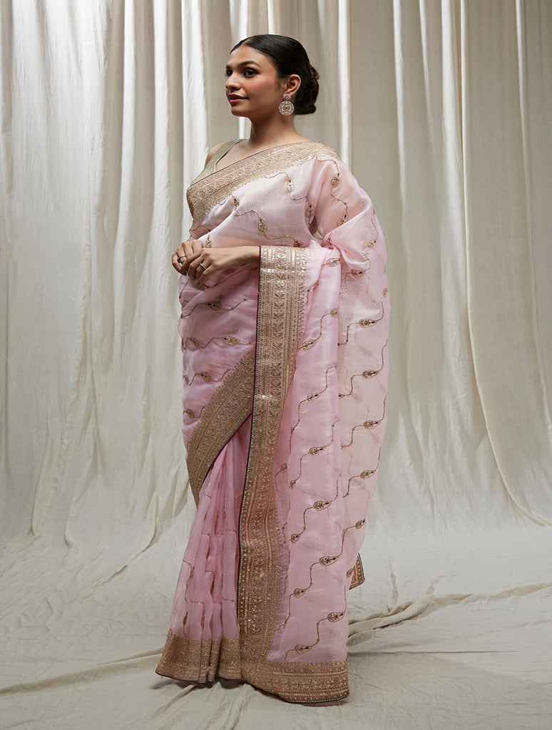 Georgette is a lightweight, sheer fabric known for its soft and flowy texture, making it a popular choice for designer sarees. Its slightly rough surface provides a unique drape that enhances the elegance of the garment. The fabric is durable and versatile, allowing intricate embroidery, prints, and embellishments to be incorporated seamlessly. Ideal for festive wear and parties, georgette sarees come in vibrant colors and can feature stunning borders adorned with zari, sequins, or beadwork. The material’s breathable nature ensures comfort while maintaining a chic and sophisticated look, making it perfect for both day and evening events.