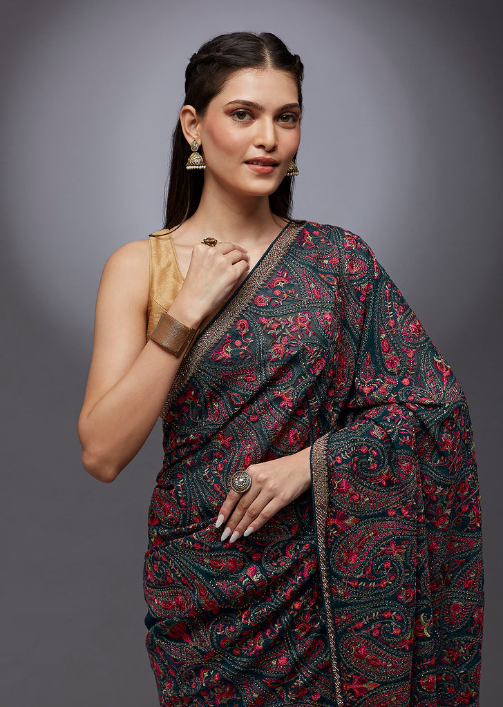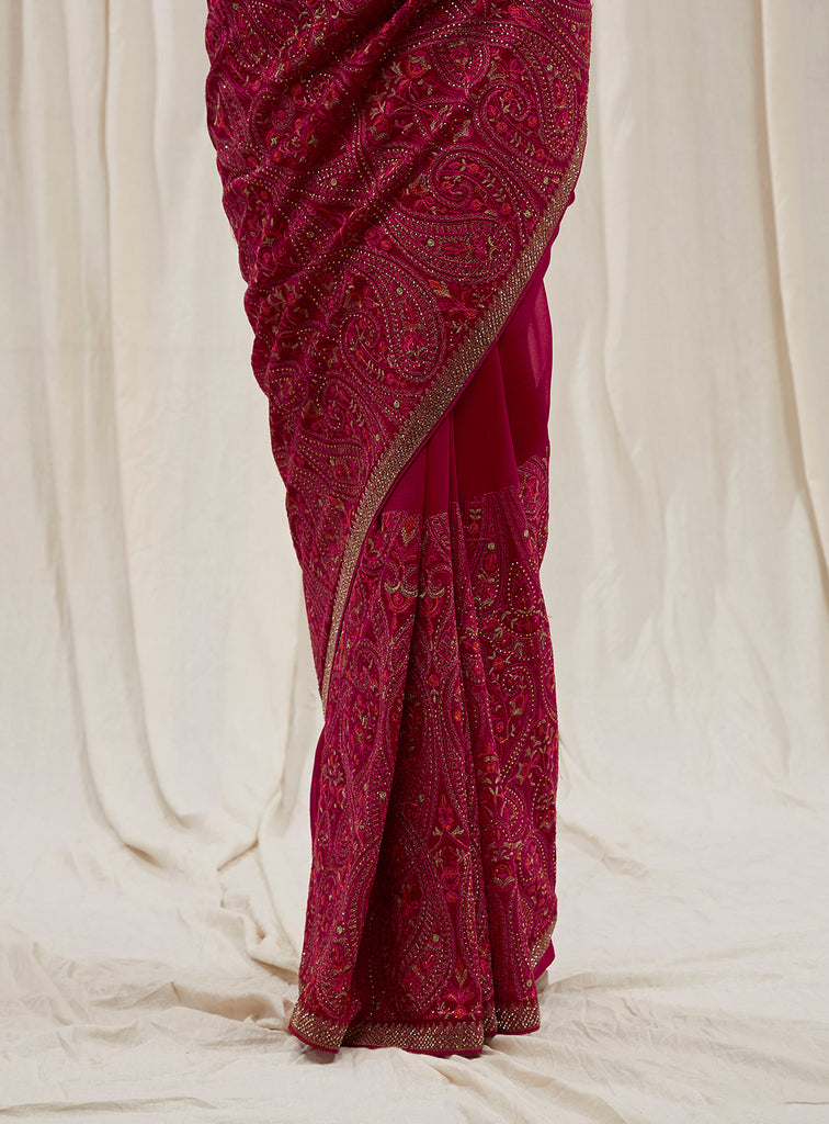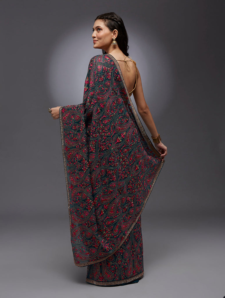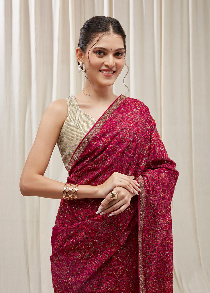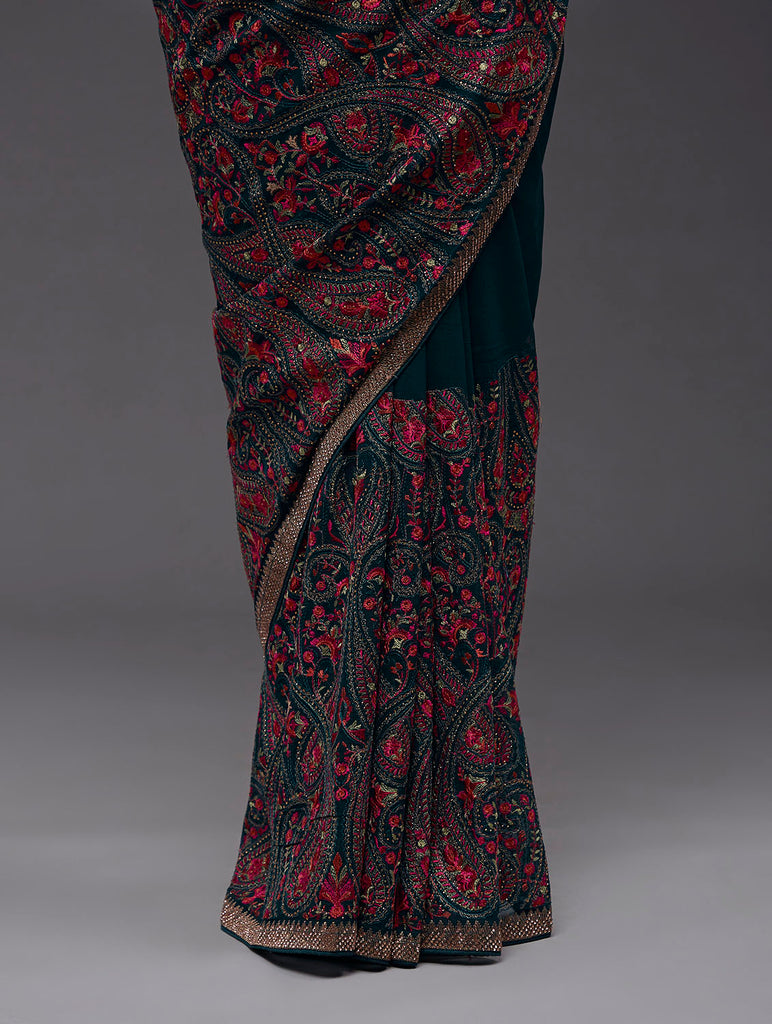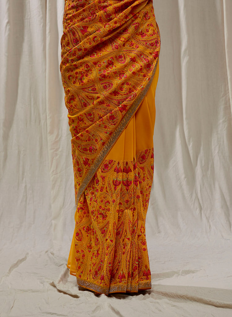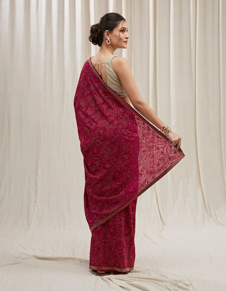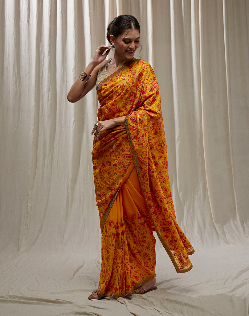 Georgette is a lightweight, sheer fabric known for its soft and flowy texture, making it a popular choice for designer sarees. Its slightly rough surface provides a unique drape that enhances the elegance of the garment. The fabric is durable and versatile, allowing intricate embroidery, prints, and embellishments to be incorporated seamlessly. Ideal for festive wear and parties, georgette sarees come in vibrant colors and can feature stunning borders adorned with zari, sequins, or beadwork. The material’s breathable nature ensures comfort while maintaining a chic and sophisticated look, making it perfect for both day and evening events.