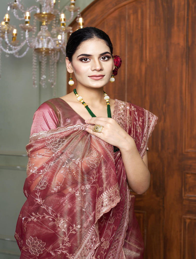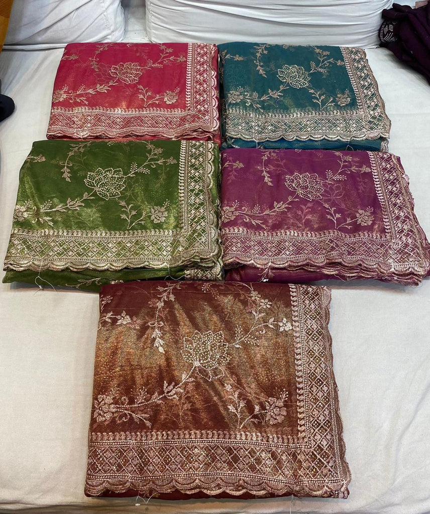 Embrace the sparkle with this stunning Georgette saree, designed with eye-catching embroidered borders and dazzling diamond work. The lightweight and flowy fabric ensures comfort while the intricate details create a sense of opulence. Perfect for weddings and glamorous events, this saree is a true showstopper, making you the center of attention.