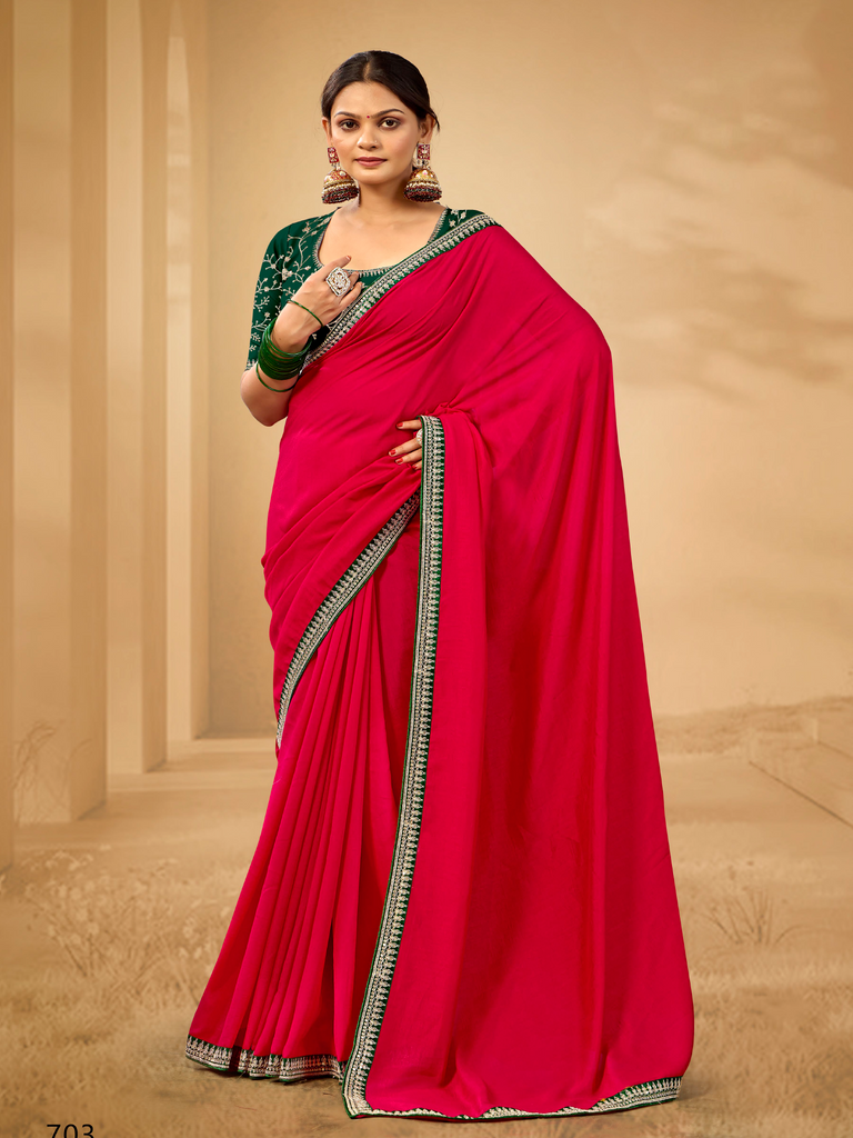 "Lace-Draped Dreams" weaves together the allure of delicate lace borders with the flowing charm of designer georgette sarees. Each piece in this collection is a celebration of elegance, featuring intricate lacework that adds a touch of timeless sophistication. The lightweight georgette fabric ensures effortless grace and comfort, making it perfect for any occasion. "Lace-Draped Dreams" combines modern design with classic accents, creating sarees that exude beauty, poise, and refinement. Elevate your wardrobe with these enchanting creations that are as dreamy as they are stylish.