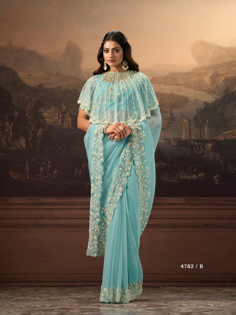 Turn heads at your next celebration with this charming tissue saree paired with a coordinating banquet jacket. The buttery satin fabric glides gracefully with every movement, while the jacket brings a contemporary twist to classic elegance. Perfect for weddings, receptions, and festive moments when you want to look absolutely radiant without trying too hard.