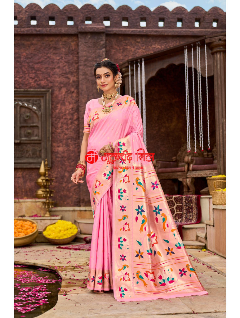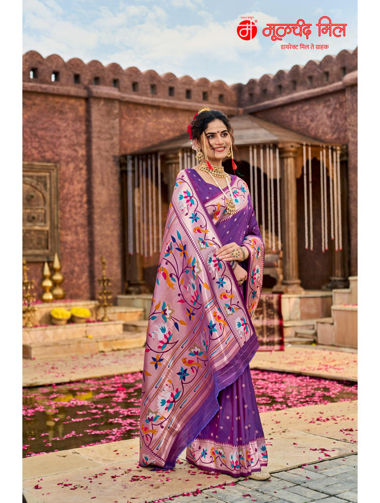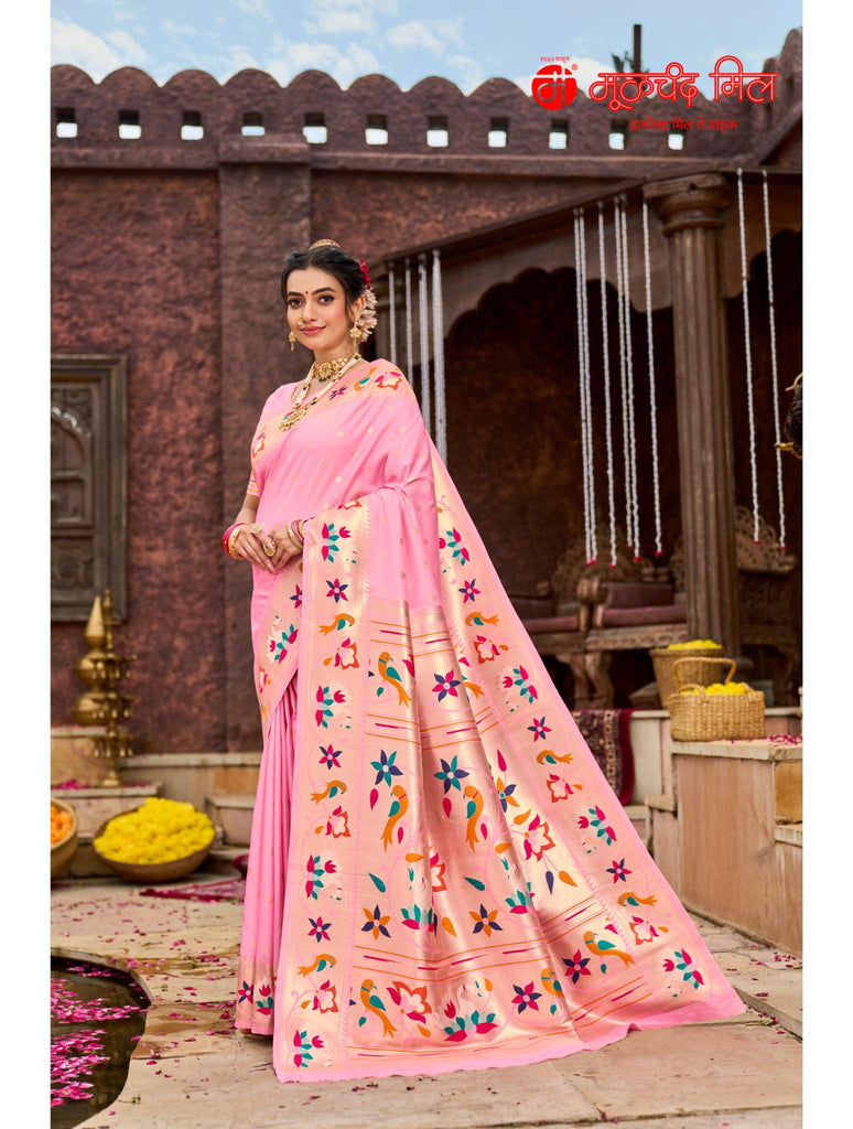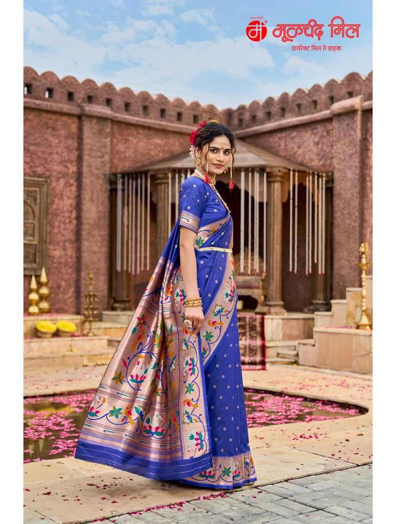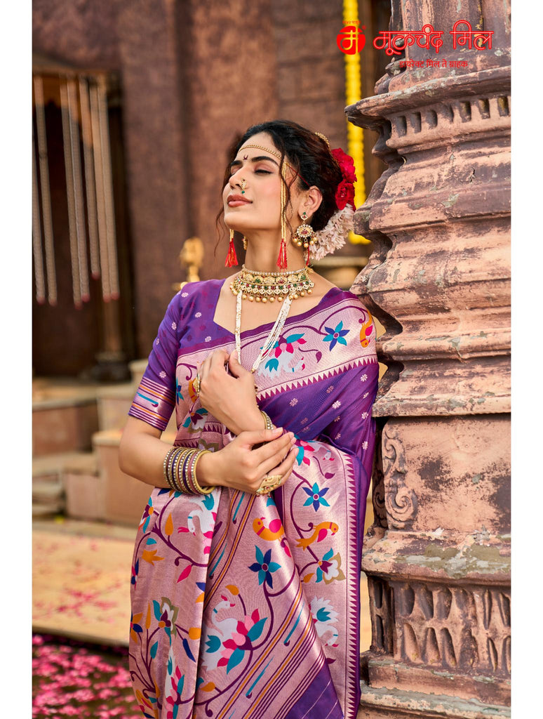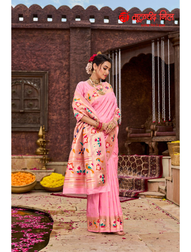 Experience timeless elegance with the Soft Silk Lotus Border Paithani Kathpadar Saree, available in seven exquisite colors. Crafted from soft silk, this saree features the iconic lotus border design and the intricate Kathpadar weaving technique, reflecting traditional artistry with a refined finish. Ideal for special occasions, it offers both comfort and sophistication, making it a valuable addition to any curated collection. Choose from seven vibrant shades to complement your unique style.