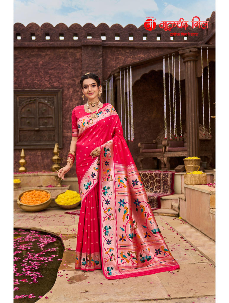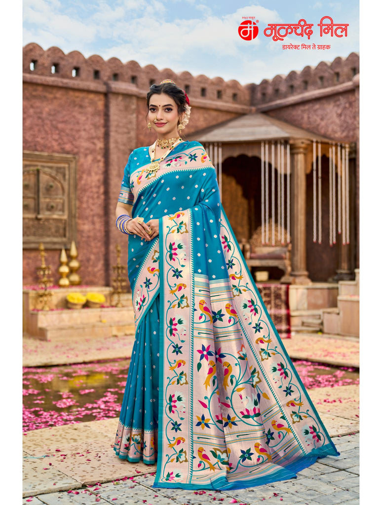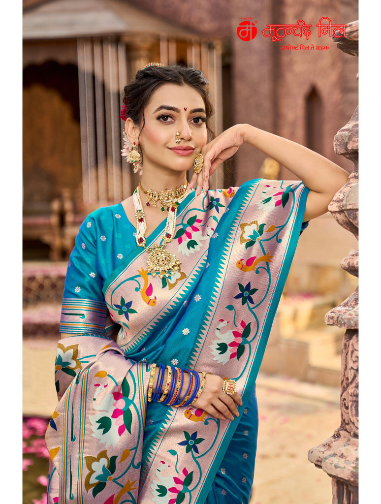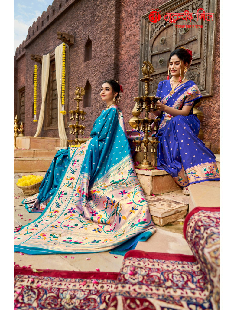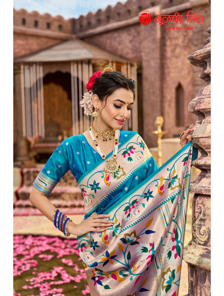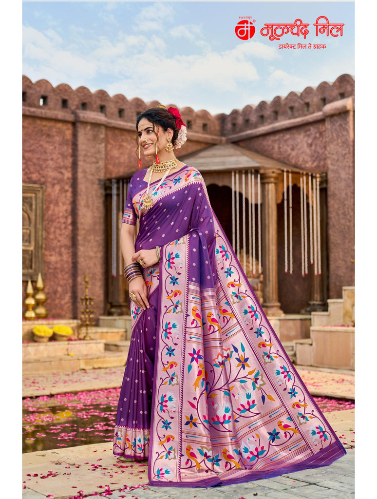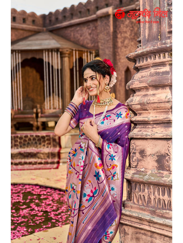 Experience timeless elegance with the Soft Silk Lotus Border Paithani Kathpadar Saree, available in seven exquisite colors. Crafted from soft silk, this saree features the iconic lotus border design and the intricate Kathpadar weaving technique, reflecting traditional artistry with a refined finish. Ideal for special occasions, it offers both comfort and sophistication, making it a valuable addition to any curated collection. Choose from seven vibrant shades to complement your unique style.