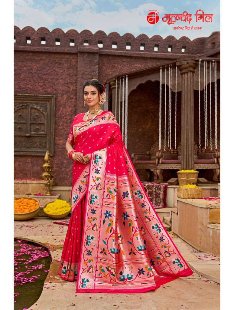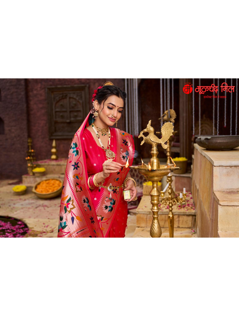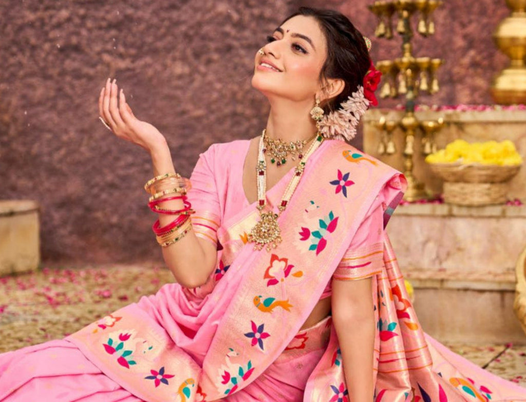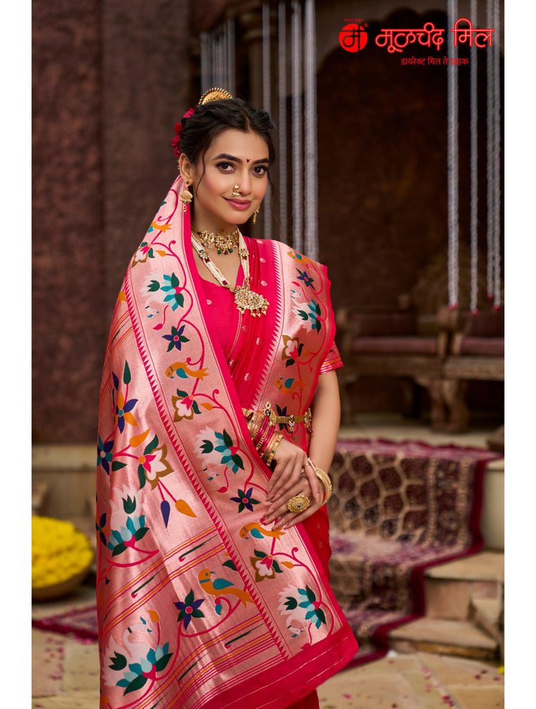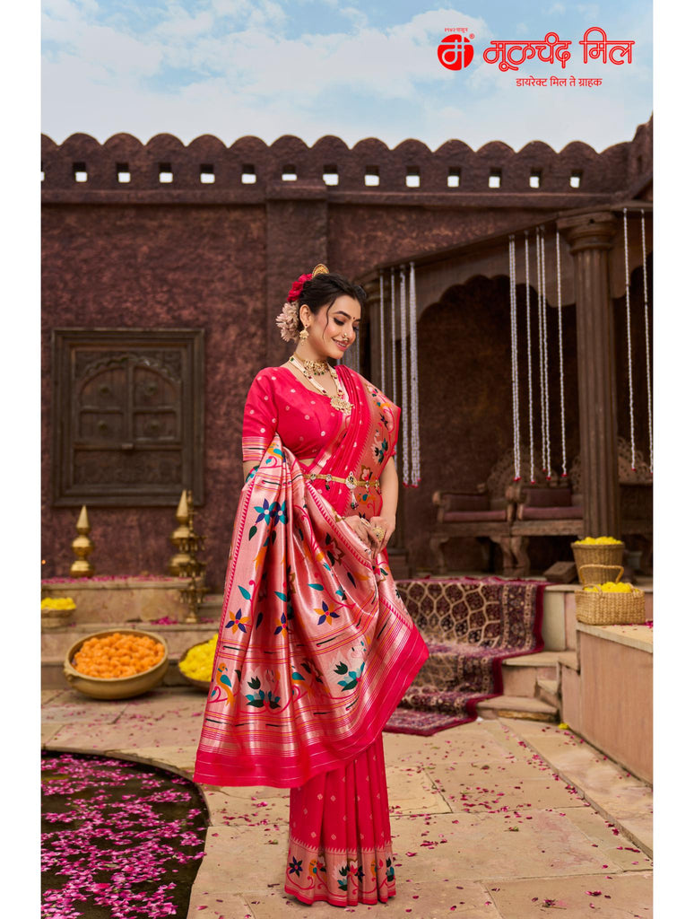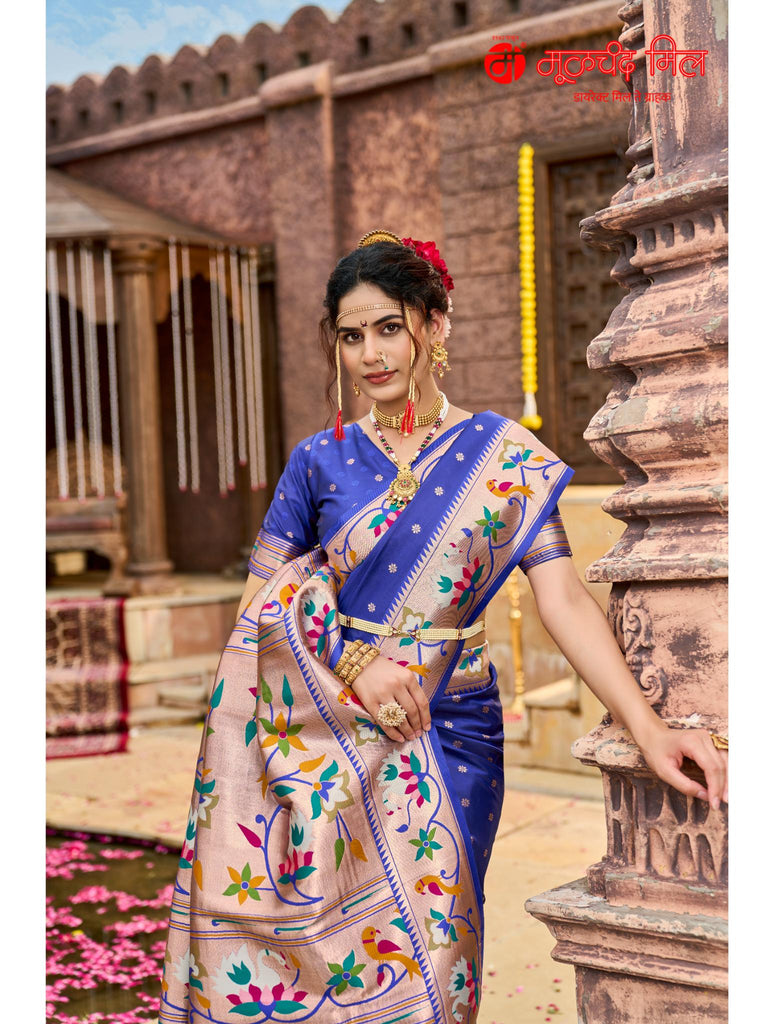 Experience timeless elegance with the Soft Silk Lotus Border Paithani Kathpadar Saree, available in seven exquisite colors. Crafted from soft silk, this saree features the iconic lotus border design and the intricate Kathpadar weaving technique, reflecting traditional artistry with a refined finish. Ideal for special occasions, it offers both comfort and sophistication, making it a valuable addition to any curated collection. Choose from seven vibrant shades to complement your unique style.