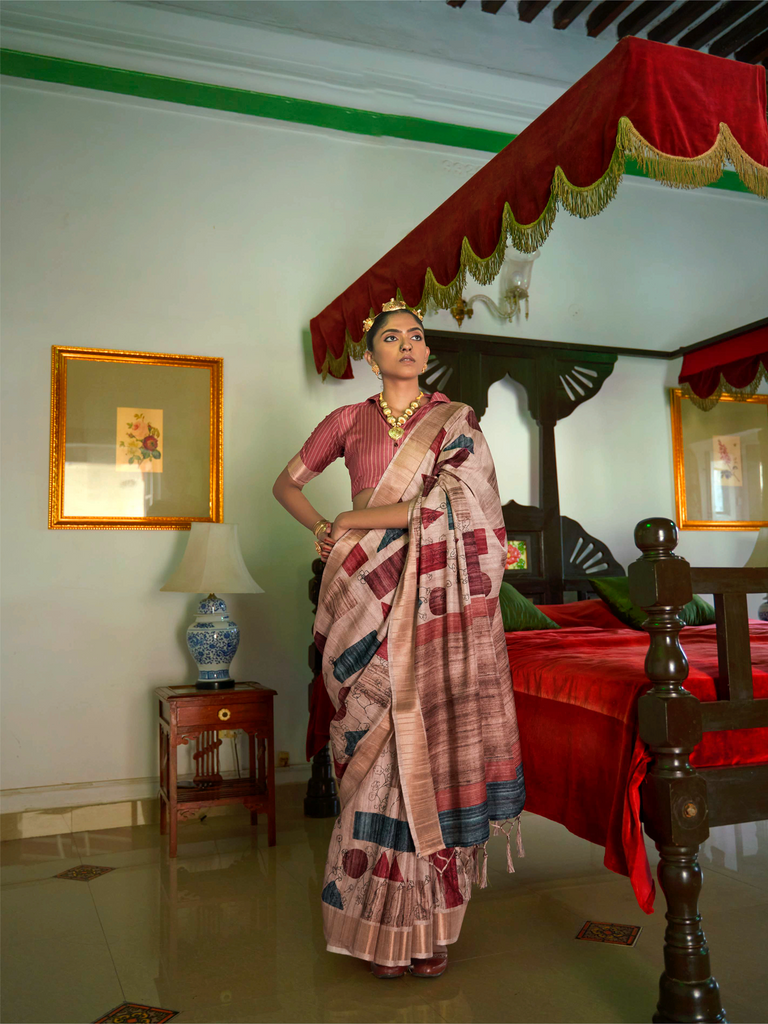 The banarasi dola silk saree is a contemporary masterpiece crafted from premium Dola silk. Known for its smooth texture and subtle sheen, this saree combines traditional craftsmanship with modern design elements. Featuring bold patterns, innovative cuts, and vibrant colors, it is perfect for festive occasions, weddings, or cultural events. Lightweight and comfortable, it offers a graceful drape that complements a variety of styles, making it a versatile and stylish addition to any wardrobe.