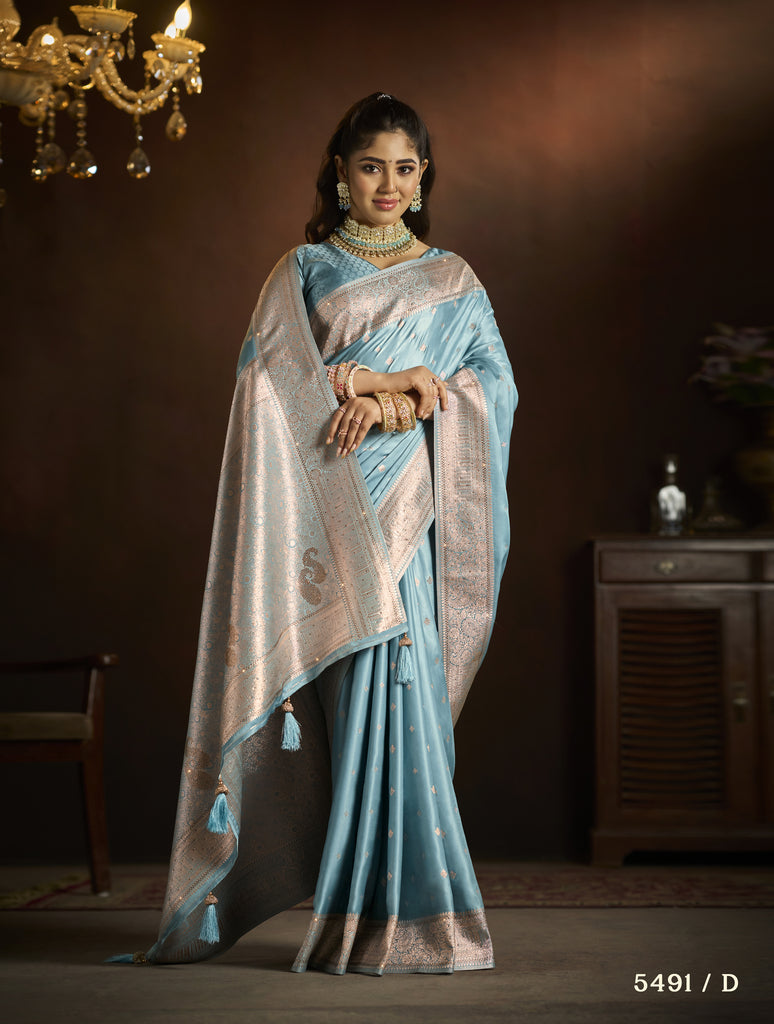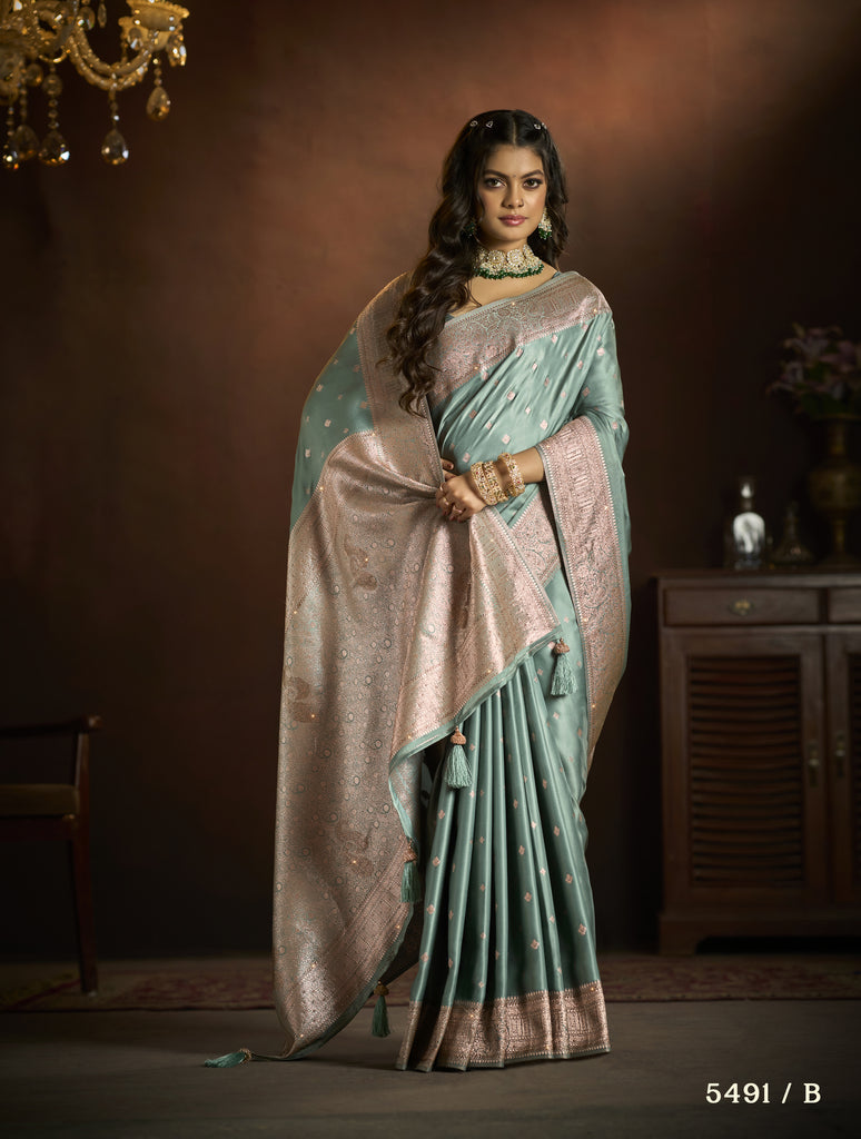 Embrace the luminous elegance of the Chamak Heritage Harmony collection. Each saree in this exquisite series is a masterpiece of satin splendor, adorned with the timeless charm of Charakha craftsmanship. The shimmering fabric of satin blends effortlessly with the intricate patterns and motifs that tell a story of cultural heritage and tradition.