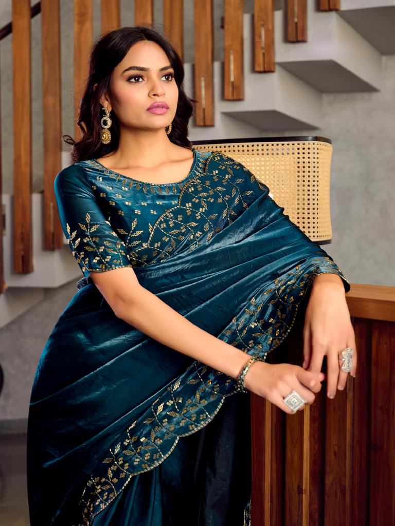 "Designer’s Luxe Touch" epitomizes modern sophistication and artistic flair. This exclusive collection of designer georgette sarees is adorned with exquisite lace borders, adding a touch of refinement to every drape. Crafted for those who appreciate high-fashion elegance, these sarees seamlessly blend contemporary trends with timeless charm. The luxurious fabric flows effortlessly, while the intricate lace detailing enhances its visual appeal. Perfect for grand occasions or intimate celebrations, "Designer’s Luxe Touch" ensures you radiate grace and poise with every step. Experience unparalleled style with these captivating creations.