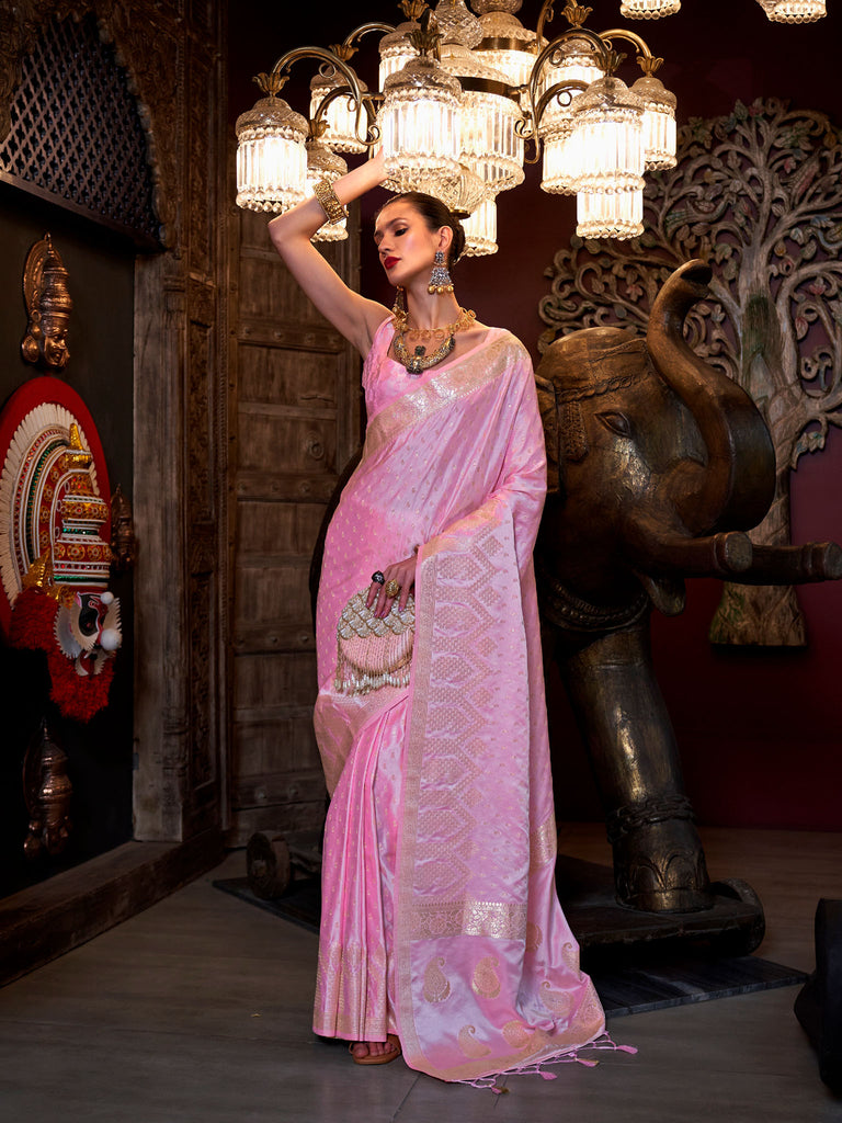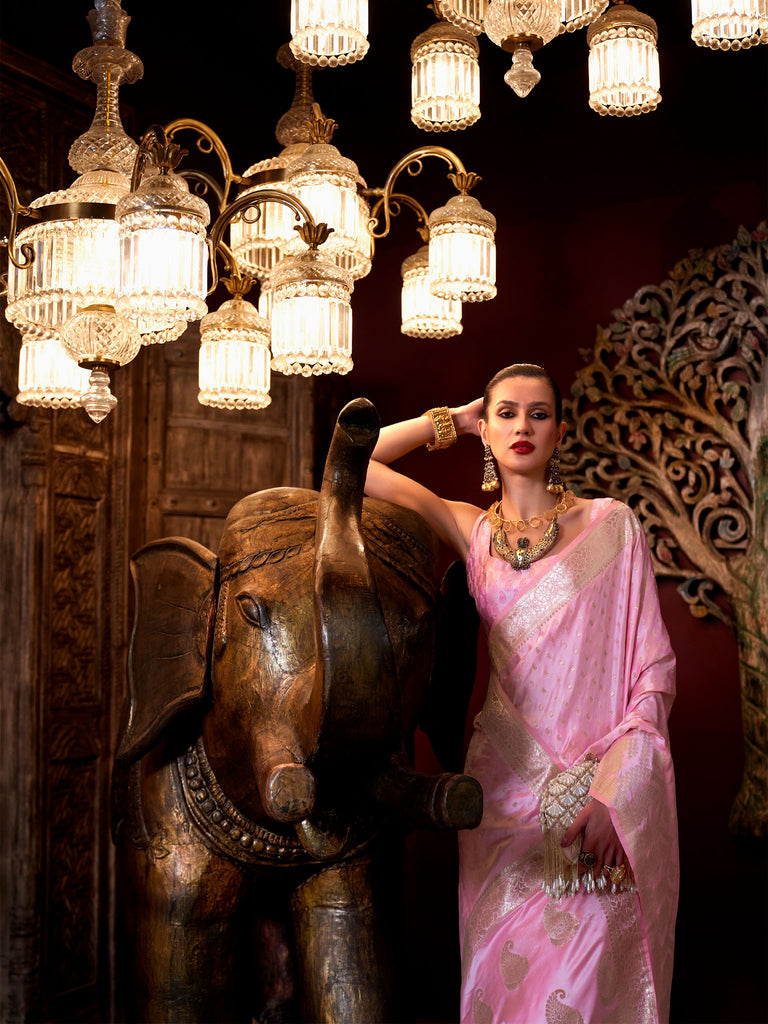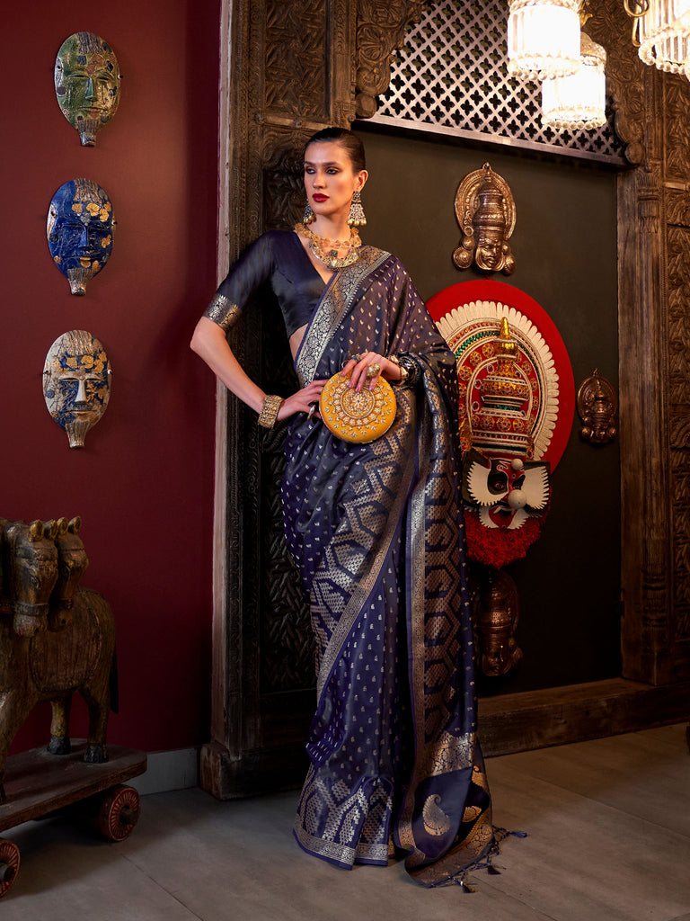 Elevate your style with the Handloom Satin Elegance saree, designed to make a bold statement at any party or festival. Its lustrous satin fabric drapes flawlessly, exuding confidence and grace. Perfect for those who dare to stand out, this saree blends traditional craftsmanship with a modern edge, ensuring you captivate every room you enter.