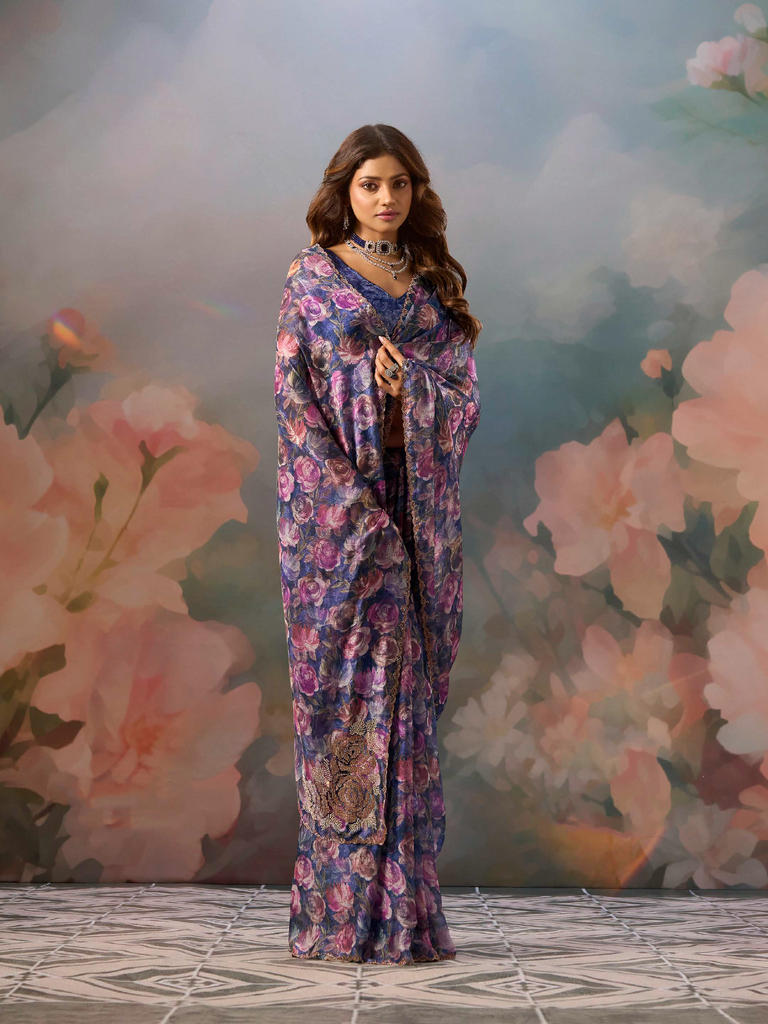 Elevate your party wardrobe with this exquisite satin designer silk saree, featuring an ornate diamond lace border that catches light beautifully. The lustrous satin finish drapes elegantly while the metallic embellishments add sophisticated glamour to any occasion. Perfect for weddings, celebrations, and formal events, this saree combines traditional craftsmanship with contemporary design. The premium silk fabric ensures comfort and breathability, while the intricate lace detailing showcases refined artistry. A timeless investment piece that transitions seamlessly from festive gatherings to special occasions.