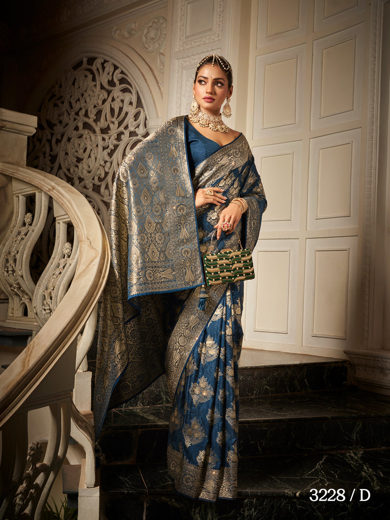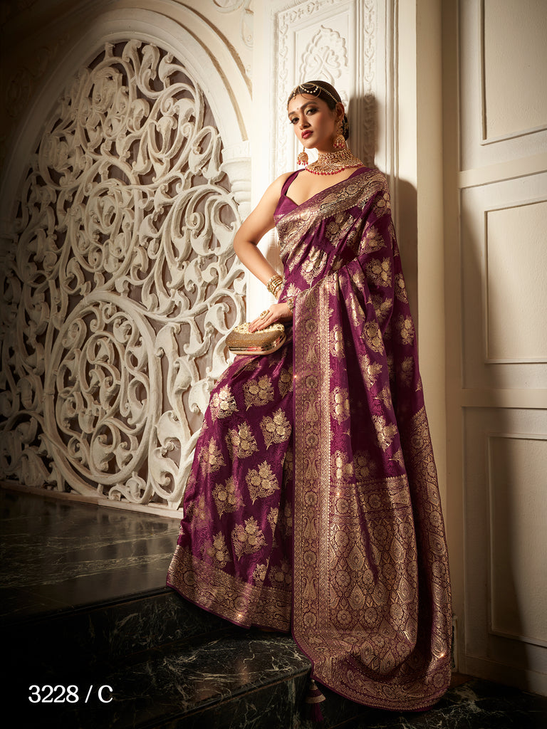 With its sumptuous satin fabric and dazzling diamond work, this Banarasi saree promises to elevate any wedding occasion to a new level of splendor. Delight your loved ones with a gift that reflects timeless elegance and intricate craftsmanship. Watch as they radiate grace and beauty, making unforgettable memories in this exquisite attire.