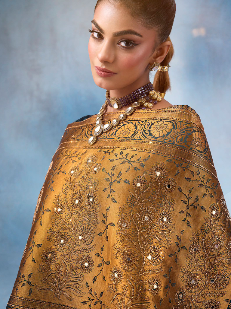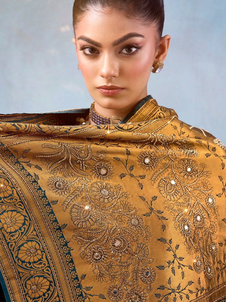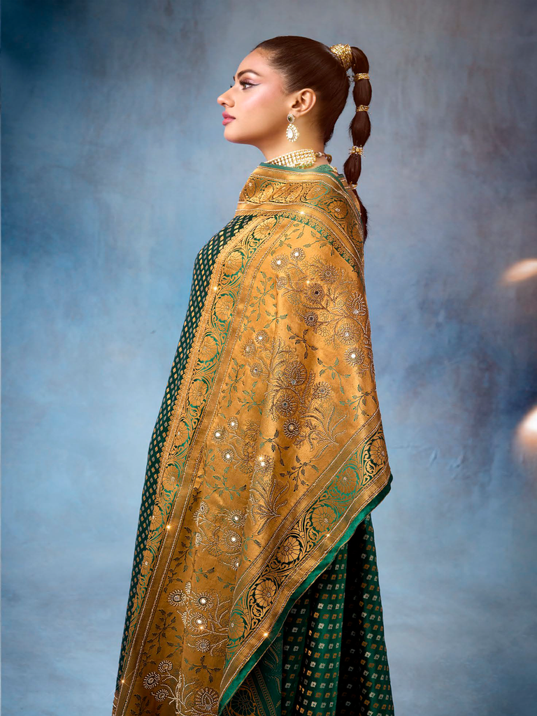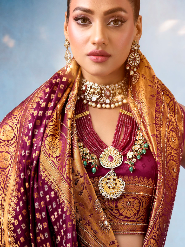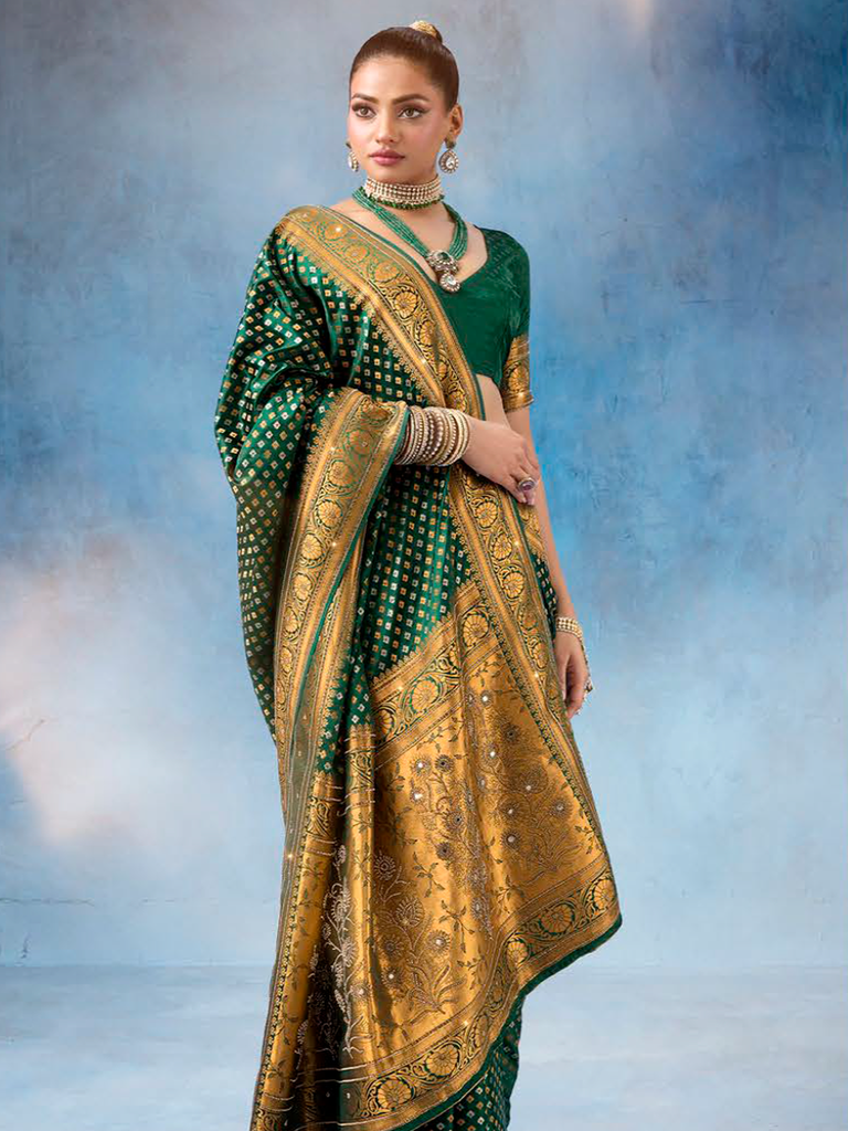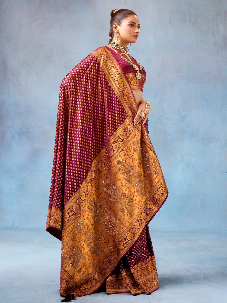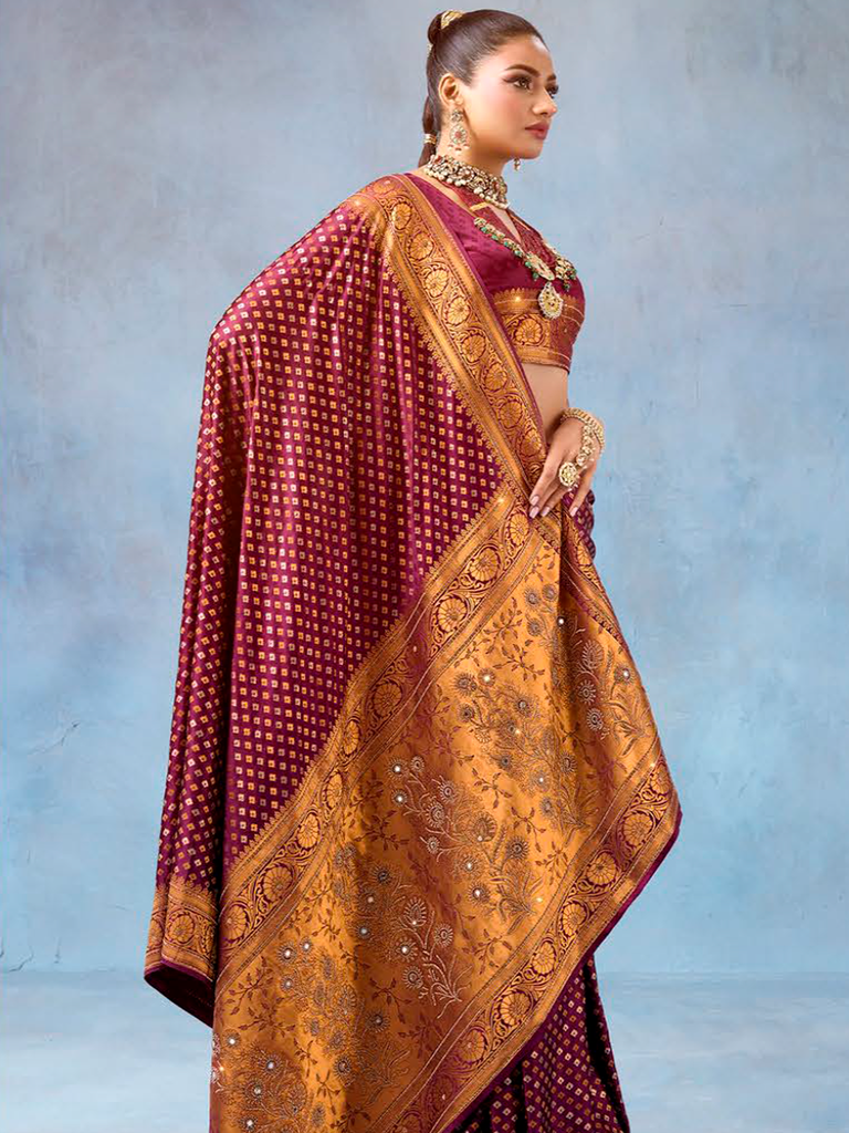 Royal Jari Kathpadar Elegance Elevate your traditional wardrobe with this exquisite Kathpadar saree, where royal craftsmanship meets timeless elegance. Adorned with intricate jari work that catches light with every movement, this piece showcases the meticulous artistry of master weavers. The rich color palette and detailed border design reflect premium quality and authentic heritage weaving techniques. Perfect for weddings, festivals, and formal occasions, this saree drapes beautifully while maintaining its structured silhouette. A statement piece that celebrates Indian textile tradition with contemporary grace.